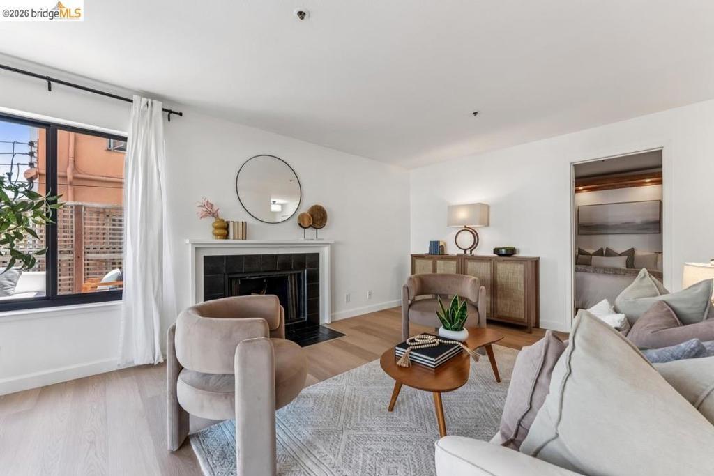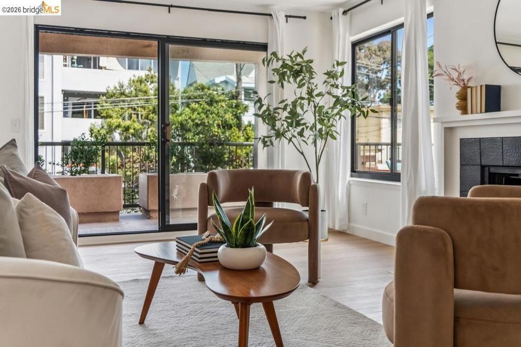 This bright, updated corner condo features a large private patio that invites you to lounge, dine, and garden to your heart’s content. The 2 ensuite bedrooms provide separation of space, while the generous outdoor area, dining room, and living room with fireplace encourage gatherings with friends & family. Throughout the unit, new LVP flooring (2026), fresh paint, and abundant natural light offer a warm backdrop, while bolder design choices lend personality and good vibes. The updated kitchen features soft-close drawers, ample cabinet space, and a sparkling new fridge (2026). The light-filled primary bedroom includes a walk-in closet and updated bath with double sinks, sleek countertops, and gorgeous tile. The second bedroom features a custom Murphy bed, making it easy to convert an office by day to a guest room by night, or would make a great kid’s room, roommate retreat, or creative space, complete with a large closet and split bathroom with tub. In-unit laundry and a dedicated parking space make city life a breeze, as does the elevator building with step-free entry. And the prime Cleveland Heights location, 2 blocks from Lake Merritt, puts gorgeous views, recreation, popular restaurants, a weekly farmers’ market, and public transit easily within reach. Welcome home.