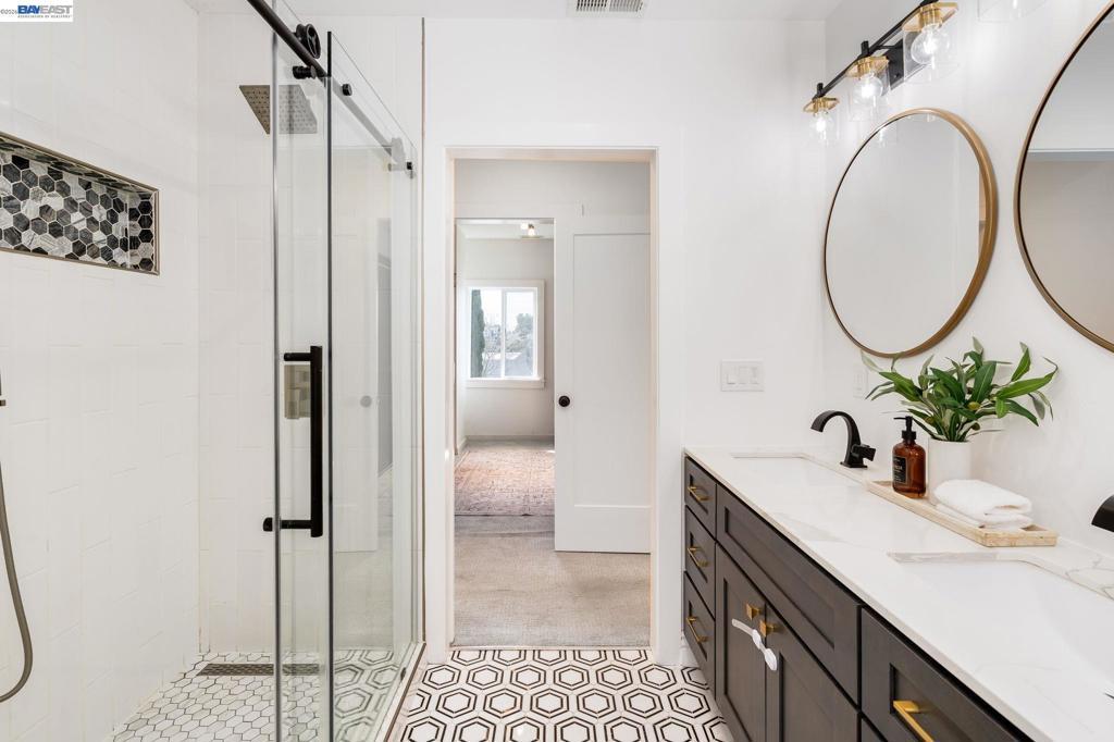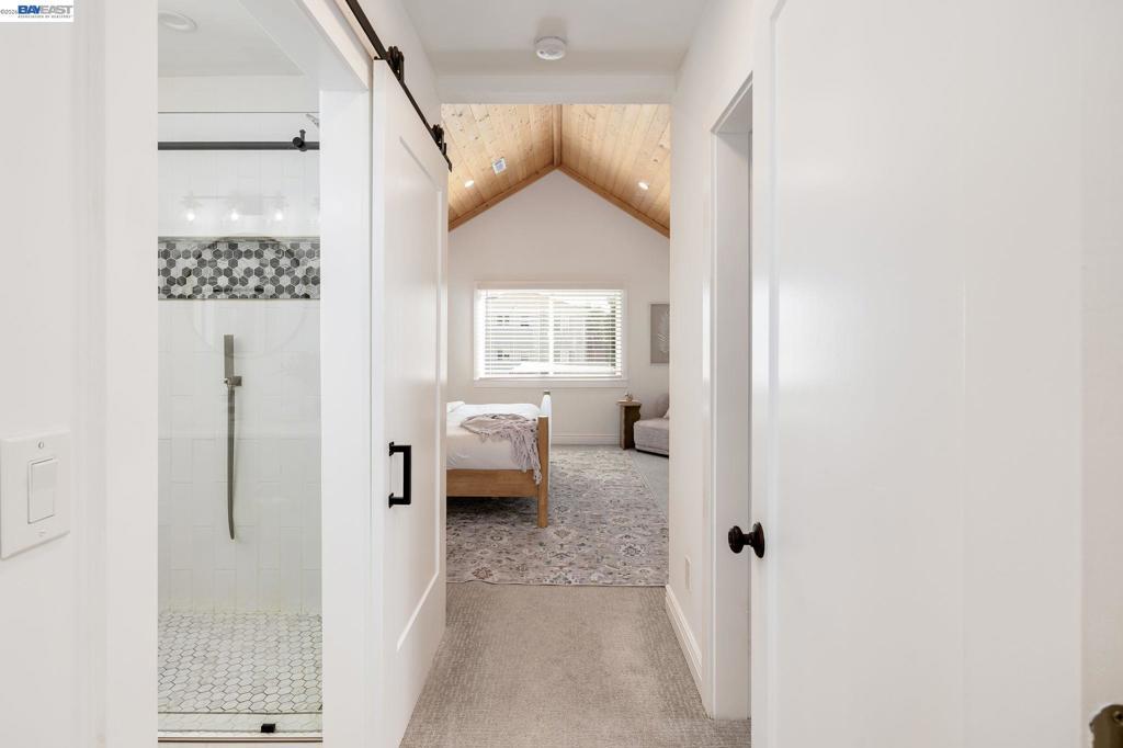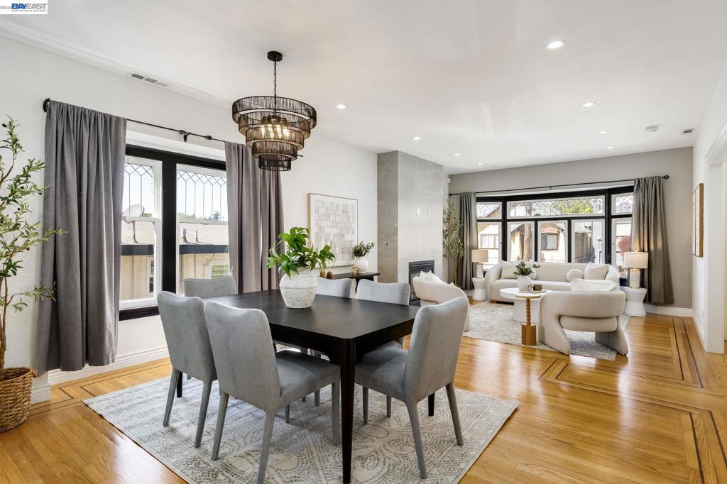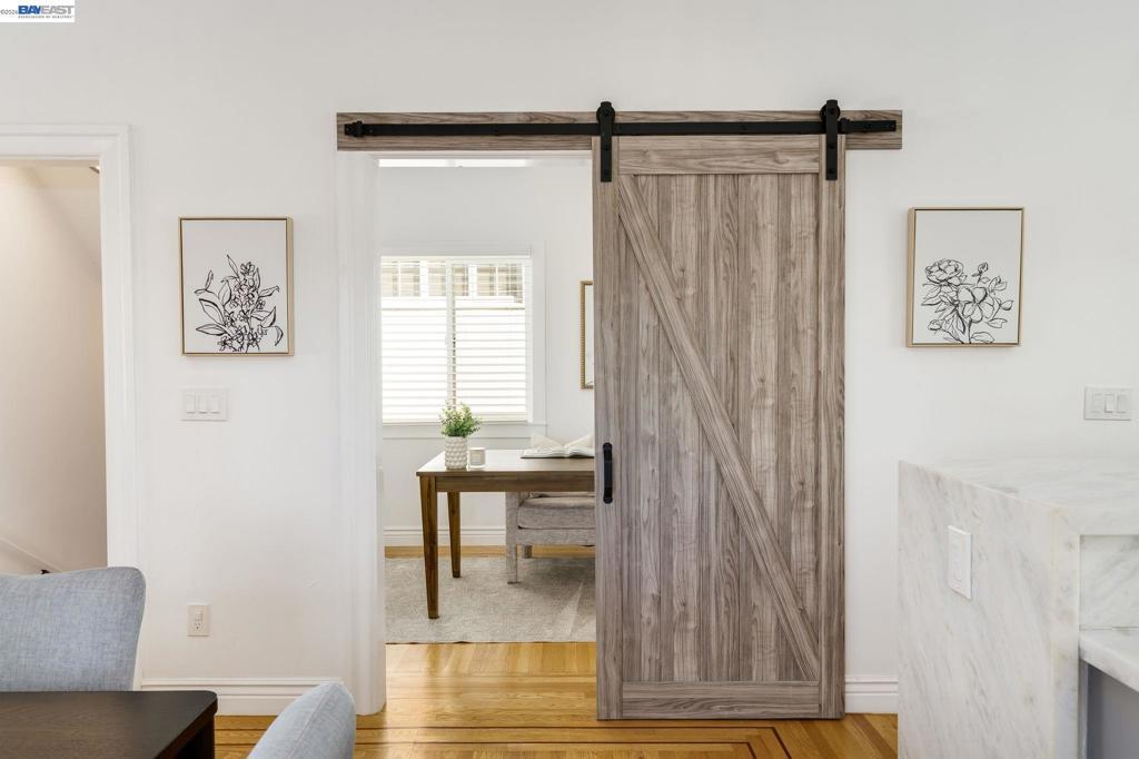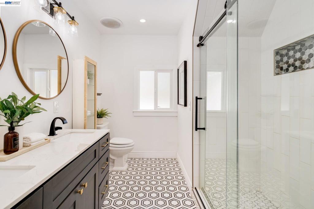 Classic 1912 Shingle Cottage, gutted and fully rebuilt in 2019/2020 with no detail overlooked. Spanning 3 levels and 2,167 SF on a 6,850 SF lot, the home features 3 beds, 3.5 baths, and a stunning open-concept main level with refinished hardwood floors, a dramatic floor-to-ceiling tiled fireplace, and a chef's kitchen with waterfall quartz island, Shaker cabinetry, subway tile backsplash, and double wall ovens. Upstairs, the vaulted cedar-ceiling primary suite offers a walk-in closet and luxurious en-suite bath with dual vanity and glass shower. Lower level includes a bedroom, full bath, kitchenette, and 2-car tandem garage — ideal for multi-gen living. Private backyard retreat with patio, decking, and lawn. Studio ADU (187 SF) with kitchenette, bath, and private entrance. Owned 7.7kW solar. Steps to Bombera, Farmer Joe's, Grand Lake Kitchen, Dimond Park, and Hwy 580