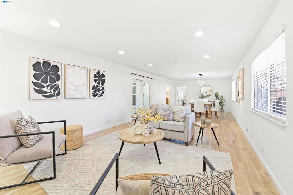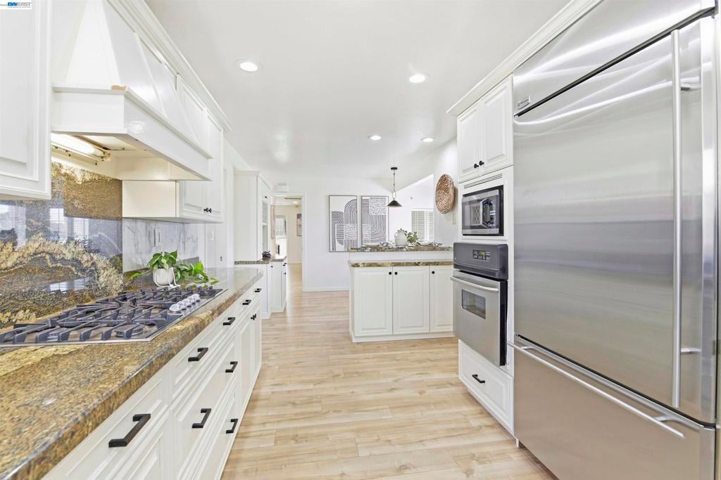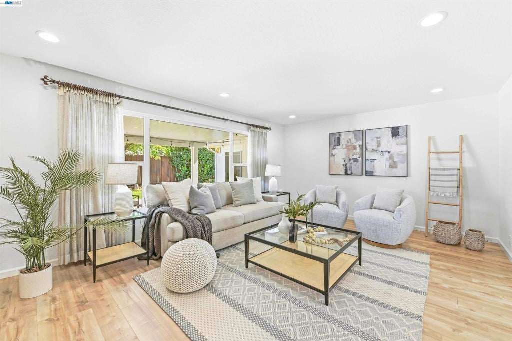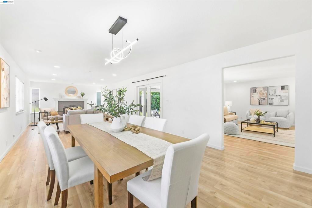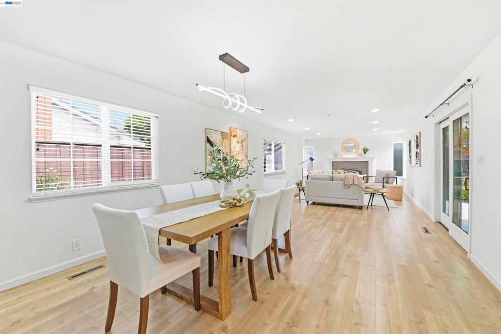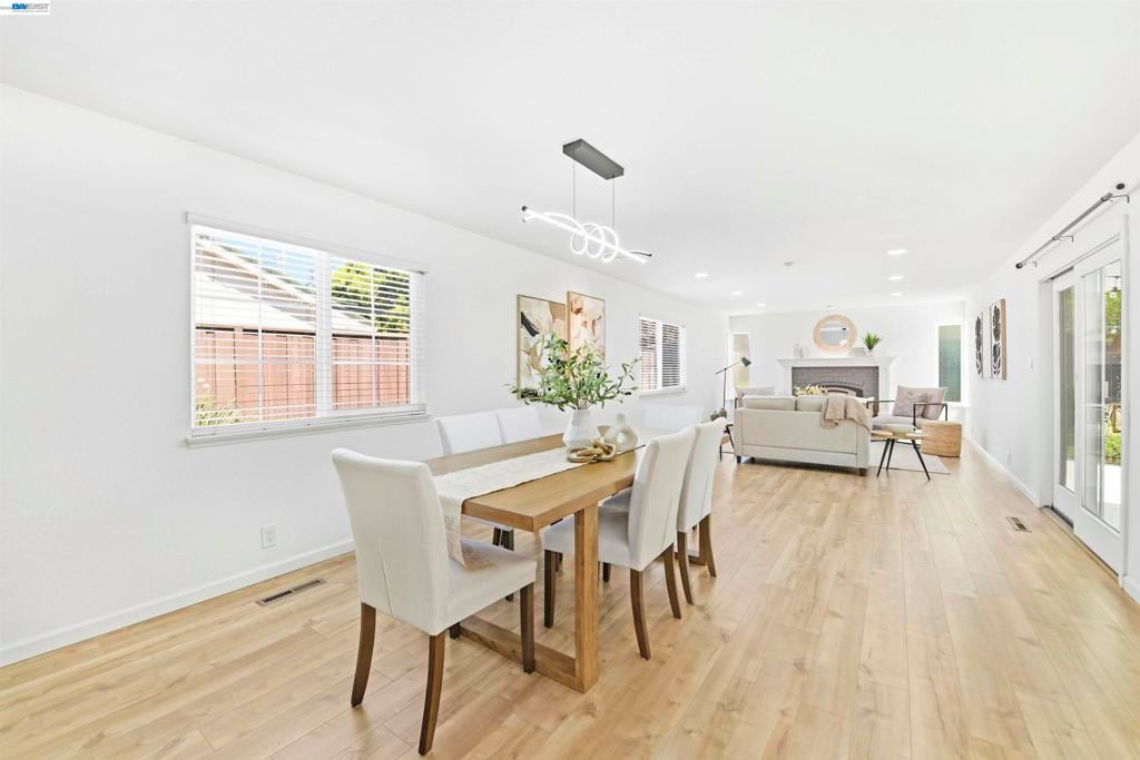 Nestled in the highly desirable Glenmoor neighborhood, this gorgeous single-story home offers an ideal floor plan with premium upgrades inside and out. The beautifully updated kitchen showcases custom cabinets, granite counter tops, large skylight, dining area with bar seating and stainless steel appliances including a gas stove. Just off the kitchen, the extended living space features a formal dining area and a spacious family room that features a cozy gas fireplace - creating an ideal setting for large gatherings. You’re sure to love the thoughtful upgrades throughout including tastefully updated bathrooms, dual pane windows, recessed lighting, quality laminate flooring and copper plumbing. The luxurious primary suite showcases a private bath with a dual sink cultured marble vanity and cultured marble shower, walk-in closet and direct access to the serene backyard. The outdoor space is ideal for relaxing or hosting with a lush lawn and covered stamped concrete patio. This home is in an excellent location walking distance to great schools, parks, shopping & local eateries. Perfect for commuters, nearby 880, 680, Dumbarton Bridge, BART & Centerville Station Move-in ready, this Glenmoor gem is not to be missed!