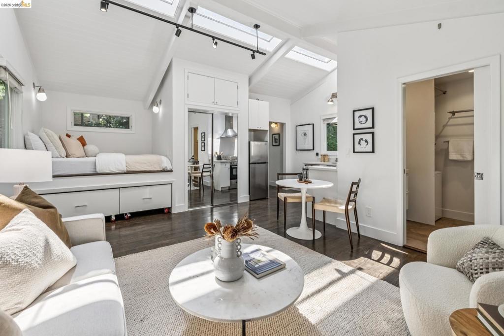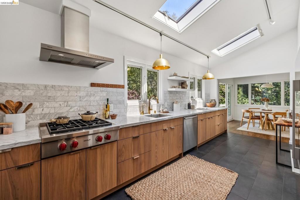 Located down a quiet tree-lined street, you will find 2095 Mastlands Drive. This stunning 3+ bedroom, 3 bathroom with ADU is a Mid-Century Masterpiece. The welcoming foyer leads to the open floor-plan living area with oversized windows flooding the space with natural light. The adjoining dining room is equally inviting, with chic custom lighting and glass sliders leading out to a sizable deck. Prepare to be impressed by this chef’s kitchen! This kitchen is a home cook’s dream boasting stylish solid brass fixtures, fashionable lighting and stainless steel appliances. Down the hallway, you will find 2 spacious bedrooms and one oversized bathroom. Stroll downstairs to find the luxury primary suite! On this level, you will also find the laundry room with ample storage. As you follow the exterior path you will approach the renovated 2-story garage. Downstairs is the studio, perfect for a home office. Upstairs is the roomy, light-filled permitted ADU. Here you will find rich hardwood floors, ample storage, a full kitchen and bath. 2059 Mastlands sits on a large lot which has been thoughtfully landscaped with mature trees, flowering plants and fruit trees. There is ample parking and is located just minutes from markets, shopping, restaurants, public transportation and the freeways.