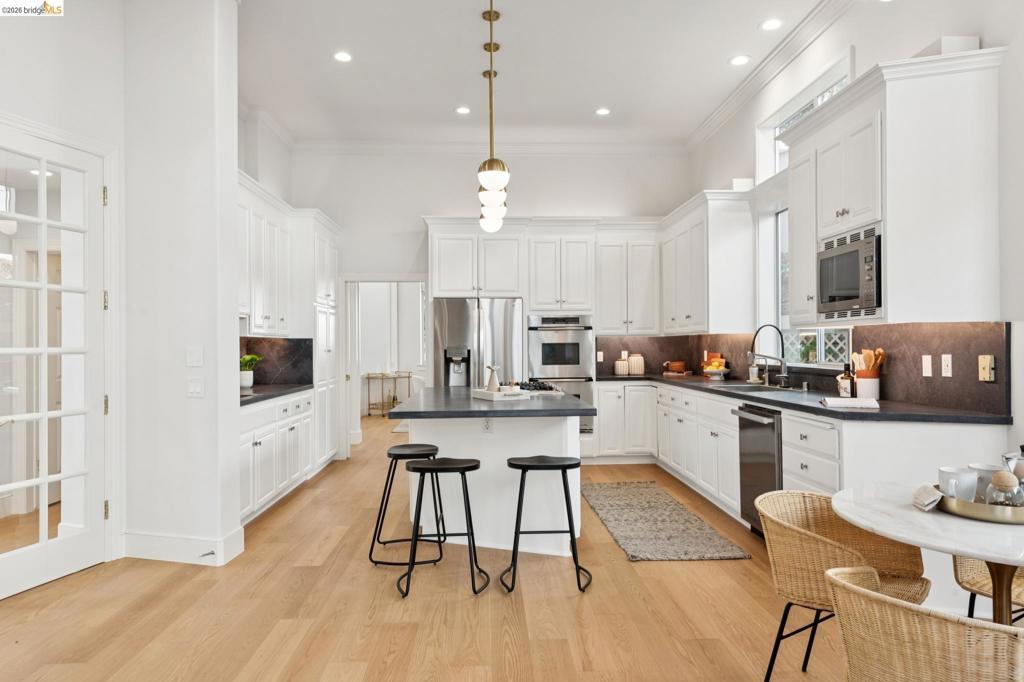 Located on a quiet cul-de-sac, 23 Valant Place offers comfort, scale, and versatility in this impressive 4-bedroom, 3.5-bath contemporary home built in 1993. Generous proportions and soaring ceilings throughout, makes this home perfect for everyday living. Enjoy elegant entertaining in the formal living and dining rooms with a cozy fireplace. The expansive eat-in kitchen and family room with fireplace is the heart of the home. The main level features an additional family room, a convenient bedroom and full bath, plus a powder room. Upstairs, the spacious primary suite offers two walk-in closets and a well-appointed en suite bath. A nearby family room or office area has another fireplace separating the primary and two additional bedrooms, a full bath, study area, and two oversized storage closets. Additional highlights include a two-car garage with lift, and solar power and Tesla battery. Ideally located in Piedmont with top-rated schools and easy access to Park Boulevard, Montclair and Lakeshore shopping, dining, and commuter options.
