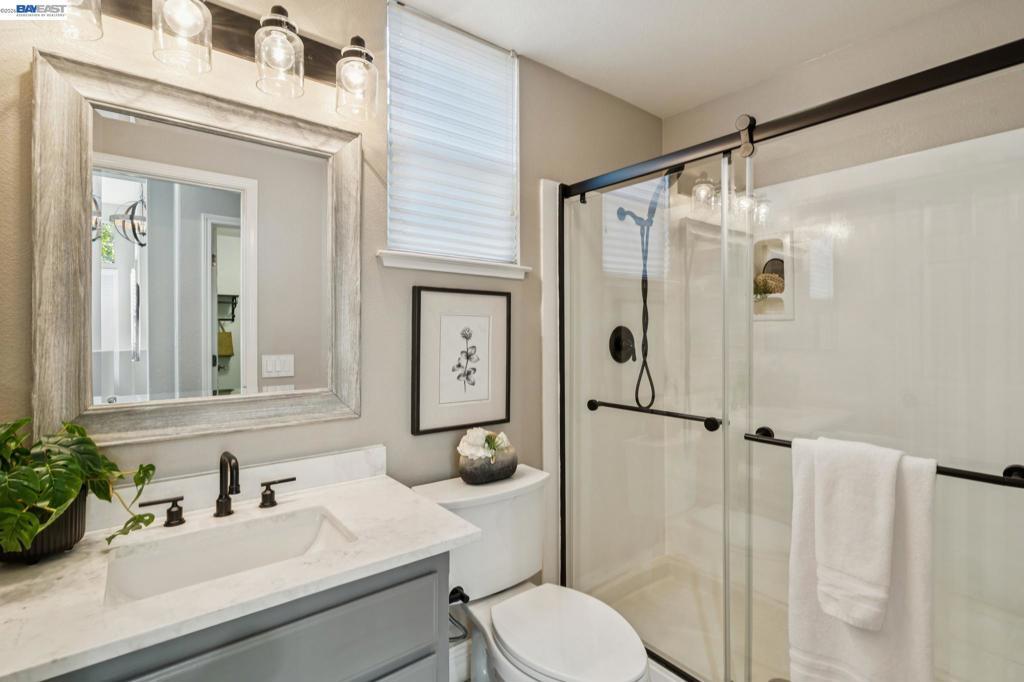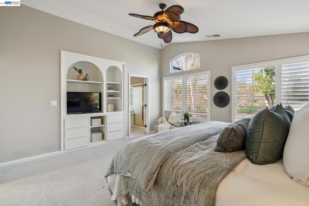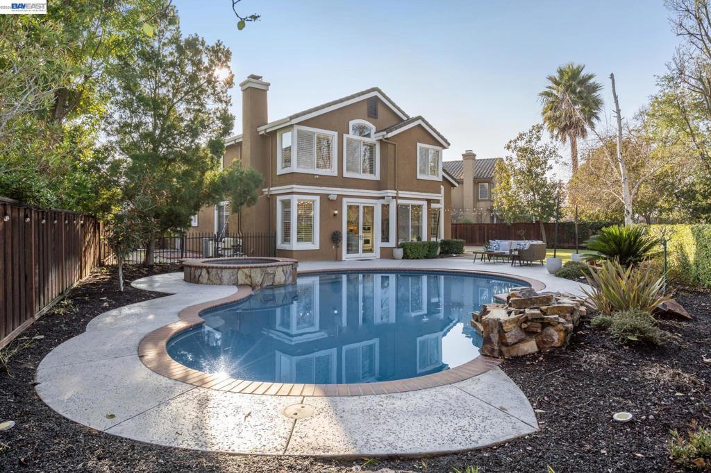 Spectacular 5 bedroom, 3 bathroom home in the highly sought-after Tassajara Ridge community. Step inside to rich hardwood flooring, designer paint, and classic plantation shutters that create a warm and inviting first impression. The thoughtful floor plan features a full bedroom and bathroom with a stall shower on the main level, ideal for guests, extended family, or a private office. Continue into the light-filled, updated kitchen showcasing quartz countertops, stainless steel appliances, and ample prep and storage space, all opening to comfortable living areas designed for both everyday living and entertaining. Upstairs, cozy carpet and spacious bedrooms provide peaceful retreats for everyone. Step outside to a resort-style backyard built for gatherings, complete with a sparkling pool and spa, low-maintenance lawn area, and a generous patio accented with charming bistro lights for relaxing evenings. A three-car garage offers abundant parking and storage. Located near top-rated SRVUSD schools, parks, shopping, dining, and commuter routes, this Tassajara Ridge home blends comfort, style, and convenience.