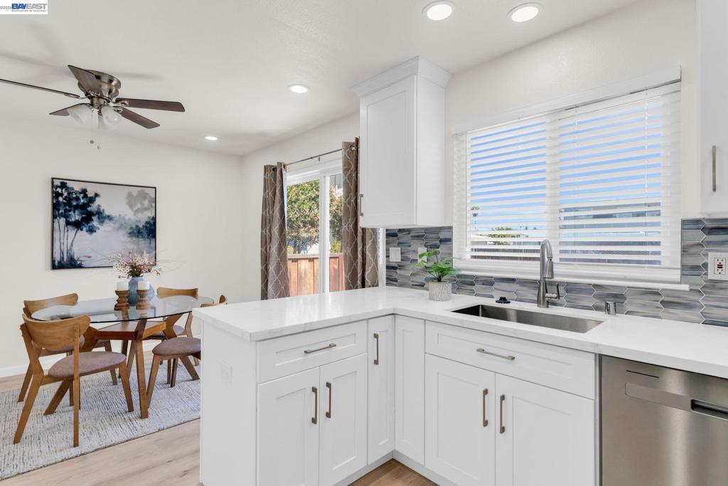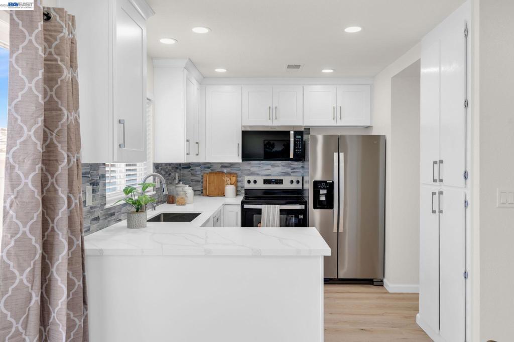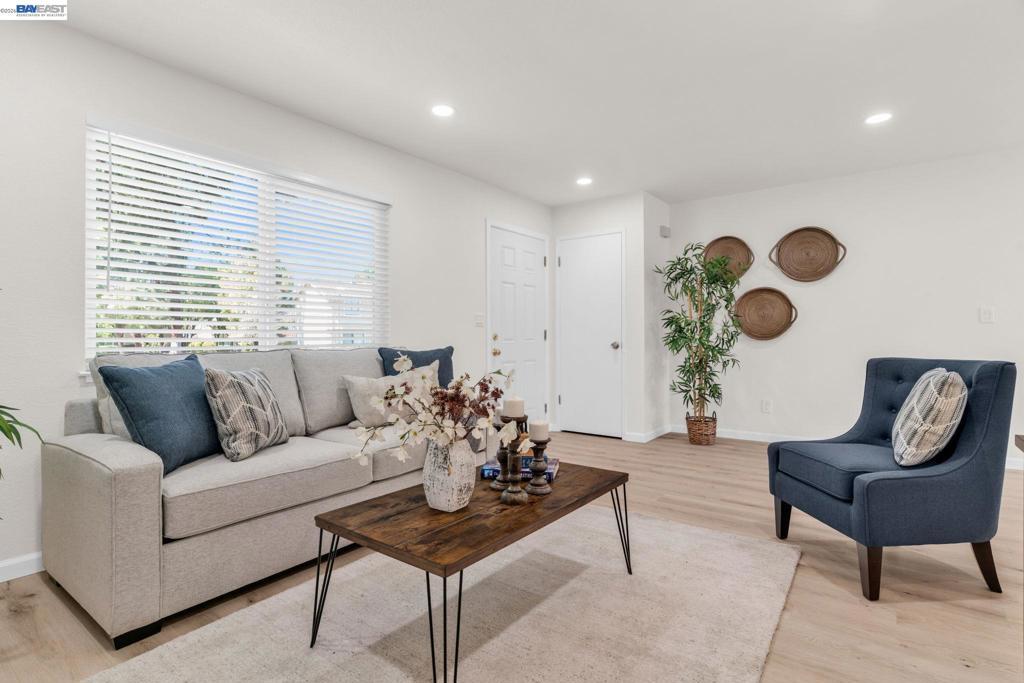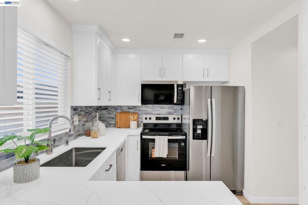 Welcome to this beautiful west-facing corner unit. This updated Townhouse is located in a prime location in Livermore. Enter to a bright and inviting living room, ideal for relaxing or entertaining. The upgraded kitchen features white shaker cabinets, quartz countertops, stainless steel appliances, a stylish backsplash, and an island, along with an adjacent dining area. Tastefully remodeled bathrooms have new vanities, toilets, tiles, mirrors, light fixtures, and a shower door. Attention to detail with new 12mm waterproof laminate flooring, fresh interior paint, dual-pane windows with coverings, recessed lighting, all-new fixtures, and updated electrical subpanel. In addition to the home's appeal, enjoy the convenience of in-unit laundry. The backyard includes a paved patio, space for barbecuing, and extra storage, perfect for unwinding after a long day. Close to downtown Livermore, enjoy Livermore Wineries and beautiful parks.