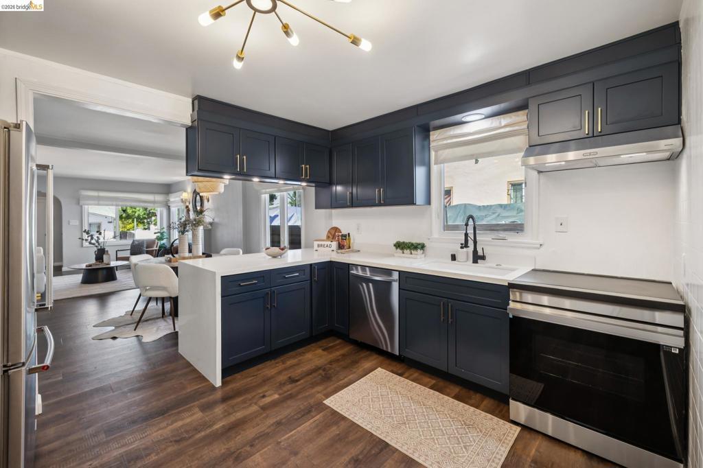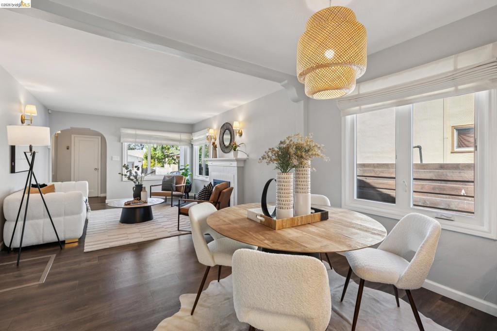 Thoughtfully upgraded, this Oakland home delivers an easy indoor outdoor lifestyle with a fresh, contemporary feel. The sleek living room flows into the dining area and a fully updated kitchen with breakfast bar, where crisp white counters, stainless appliances, and deep blue cabinetry create a space that feels both elevated and inviting. Recent improvements bring comfort and peace of mind, including dual pane windows, updated electrical, newer appliances, mini split heating and cooling, solar with battery backup, electric fireplace, EV charging, and a partially updated roof. Step outside to a private, low maintenance backyard designed for relaxing and entertaining, with patio space and all-season turf. Front and rear fencing enhance usability and privacy, while a deep garage adds parking and storage. Located near the Laurel District, enjoy easy access to Sequoia Diner, Ghost Town Brewing, Farmer Joe’s, and everyday essentials. Dimond Park and Joaquin Miller Park offer nearby trails and recreation, with convenient access to Highway 580 and 13 for an easy commute. Move right in and enjoy a home where the heavy lifting has mostly been done.