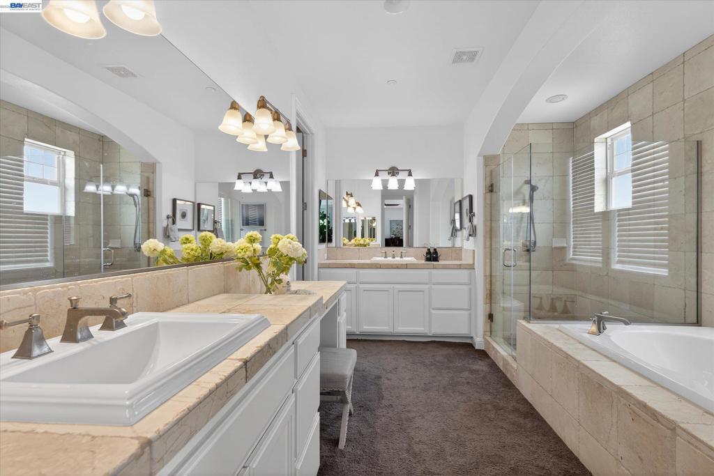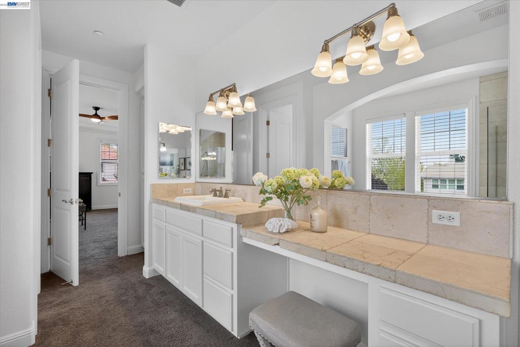 Situated in South Livermore’s sought-after Corners neighborhood, this East Facing, 5-bedroom, 5-bath home combines luxury, charm, and modern living. The wrap-around porch on its corner lot offers a warm welcome, while hardwood floors, crown molding, and an open layout inside exude effortless sophistication. The chef’s kitchen impresses with Viking appliances, a 6-burner gas range, Quartz counters, a butler’s pantry, and custom cabinetry—perfect for entertaining. A main-floor bedroom and bath add flexibility for guests or multi-generational living. The family room, with its cozy fireplace and built-ins, flows seamlessly into the kitchen. Step outside to a newly designed backyard featuring an outdoor kitchen, fruit trees, Japanese Maples, and a fire pit. A detached 3-car garage, ample storage, and a long driveway provide plenty of parking. Experience eco-friendly living with this solar-powered home that lowers your carbon footprint and saves on utilities. Enjoy nearby vineyards, scenic walks in Sycamore Grove, and the charm of this vibrant community. Located in Livermore Wine Country, this home offers more than just a place to live—it’s a lifestyle.