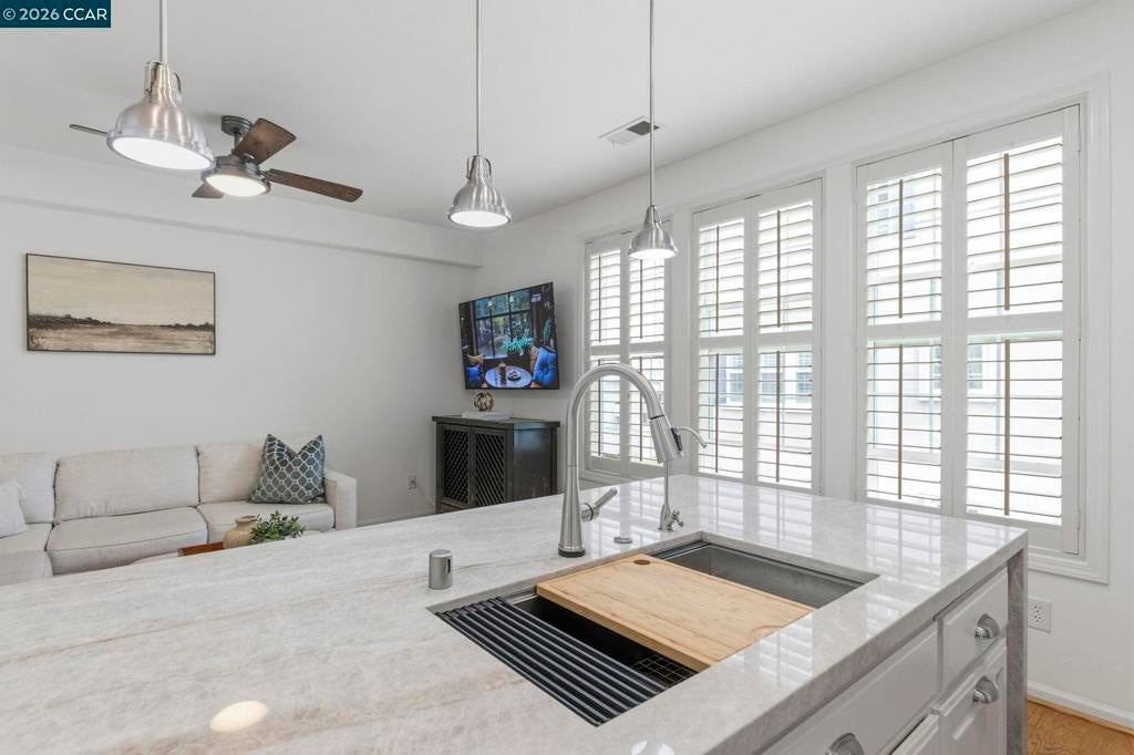 Beautifully upgraded townhome offering approx 2,112 sqft of thoughtfully designed living space. Attached 2-car garage & convenient guest parking on Brannigan St. add to the home’s everyday ease. The standout chef’s kitchen has been extensively renovated & serves as the heart of the home, featuring an oversized waterfall island wrapped in two adjacent Taj Mahal quartzite slabs w/seamless, continuous veining. A full-height backsplash crafted from a third matching slab creates a cohesive, designer finish. High-end upgrades include an LG smart gas range, LG 3-rack dishwasher, Hauslane stainless steel hood, Aquasana reverse osmosis system, KRAUS workstation sink w/disposal & Delta touchless faucet. The refinished oak cabinetry is enhanced with premium Behr cabinet paint, soft-close hinges, SS hardware, modern black outlets & cover plates & designer pendant lighting. Additional improvements include plantation shutters, refreshed baths w/refinished cabinetry & KOHLER fixtures, updated guest bath, reconfigured laundry & mudroom for added functionality, Ecobee thermostat, EV-charging readiness in garage. Ideally located near highly regarded Dublin schools, Kolb Elem, Fallon Mid, Emerald HS, and just minutes from 580, 680, SF Premium Outlets, The Shops @ Waterford & upcoming Dublin Centre.