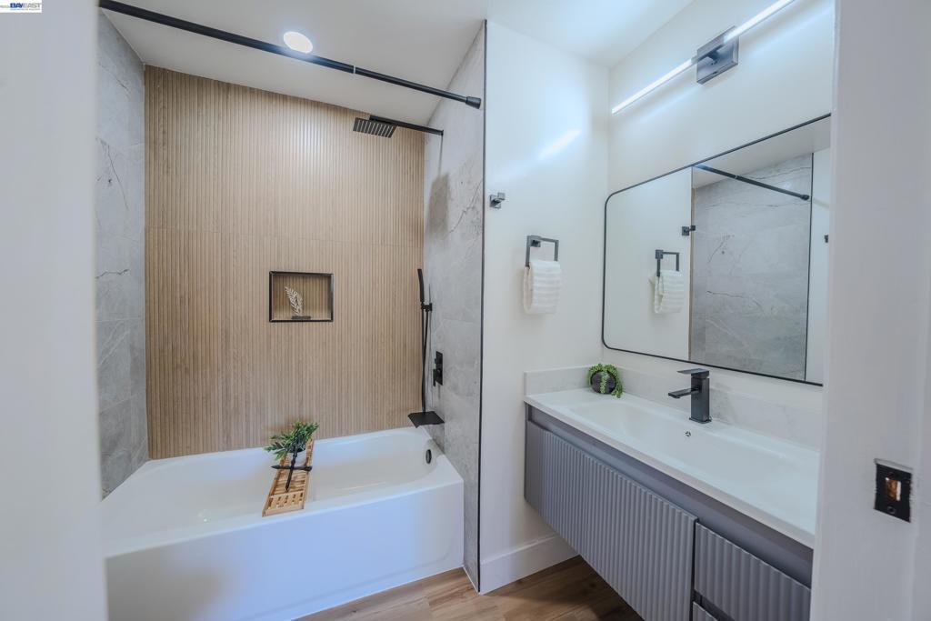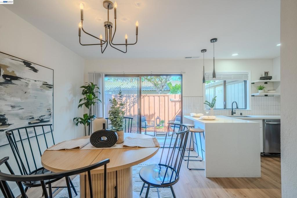 Welcome to this charming updated two story townhouse nestled in the vibrant Newark community. This property offers a blend of modern living having 3 bedrooms & 2.5 baths. The open living area welcomes you with a large bay window, recessed lighting & decorative electric fireplace with a remote control. Also, flanked by built-in shelving for a cozy ambience. 1/2 bath downstairs with eat-in kitchen that can act as a dining area. Sliding door which leads to adjacent patio & landscaped yard with privacy entry & storage shed. Complete turn-key with tasteful updates; white oak vinyl plank flooring throughout, decorative lighting & top to bottom professional finishes. Designer type kitchen complete with a Samsung SS appliance package, Quartz countertop with breakfast bar & pantry area. Updated baths with added rainfall style shower for spa like experience. Upstairs primary suite with exceptional clean & modern designs. Residents enjoy HOA amenities such as a pool, tennis courts among others. Easy access & walking distance to supermarkets, retail stores & restaurants. Also, near Newark Mall, Costco, Tesla & Mass Transportation such as HWY 880 & 84. This home offers both modern living & convenience. A True Gem!
