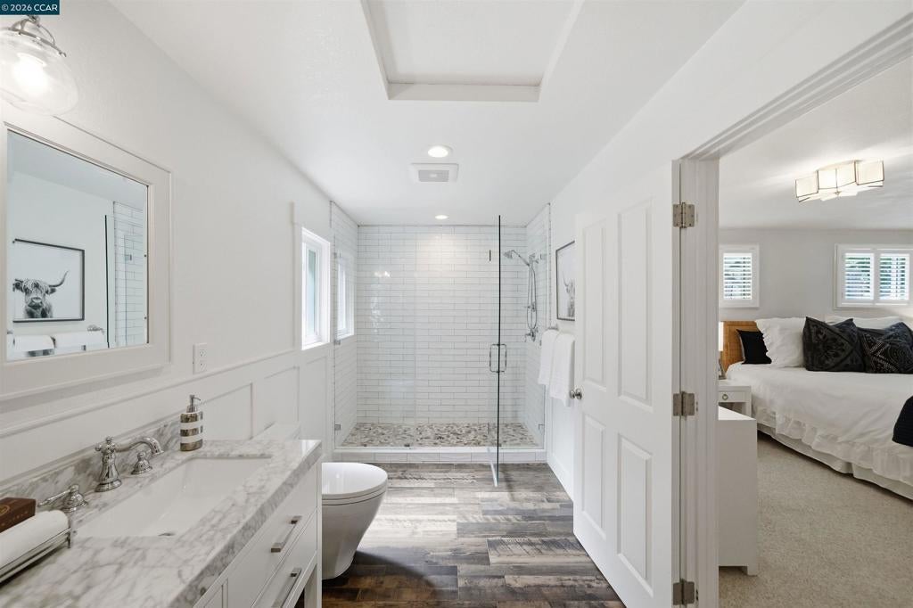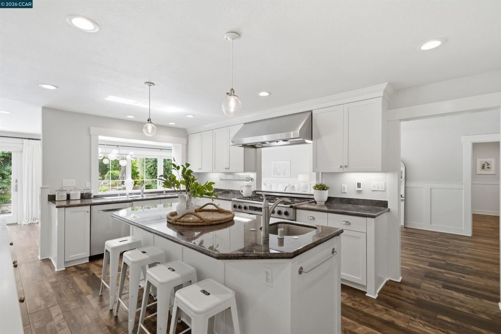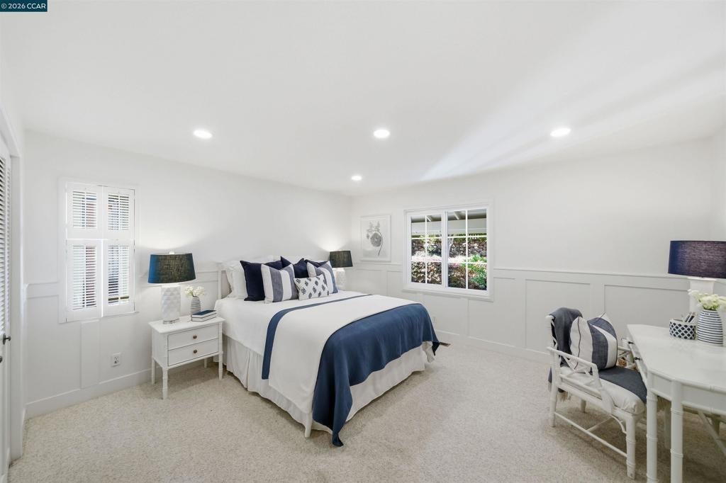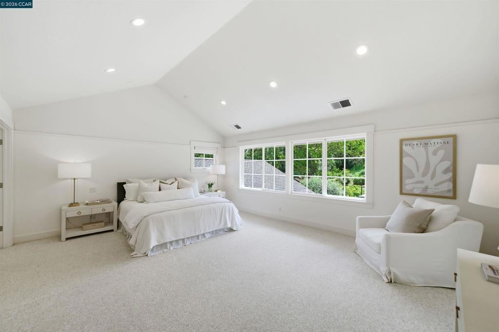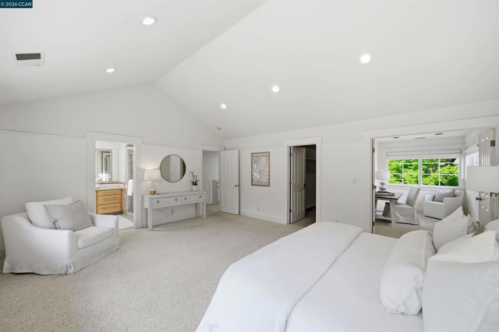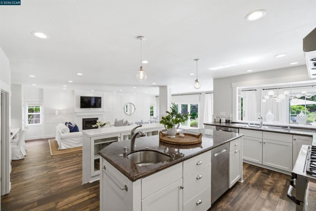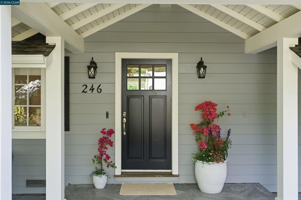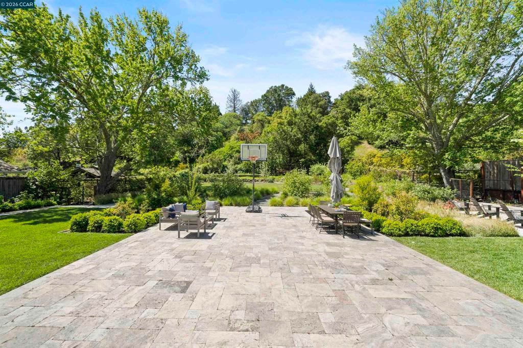 Rarely does a home like this come to market in Orinda. From the moment you arrive, the elegant traditional covered entry, impeccably landscaped front garden, and mature Japanese maples set the tone for everything that follows. Step inside to a home reimagined from top to bottom with a sophisticated designer palette; crisp white wainscoting, warm wide-plank floors, skylights, and walls of glass that dissolve the line between indoors and out. The main level is an entertainer's dream: a cozy parlor with fireplace and built-in cabinetry, an expansive open-plan family room with skylight and sliding doors to the patio, a beautifully appointed dining room, and a gourmet kitchen with stainless appliances, island, bar seating, and butler's pantry. Two generous bedrooms on this level; one a serene en-suite complete the main floor. Upstairs, the primary suite impresses with soaring vaulted ceilings, lush garden views, walk-in closet, and attached office. Two additional bedrooms with vaulted ceilings and a well-appointed hall bath complete the upper level. Outside is where 246 Overhill truly sets itself apart. The .69-acre flat lot, vanishingly rare in Orinda, has been transformed into a resort-caliber retreat: a grand stone patio with built-in fire pit, a separate dining terrace, sweeping oval lawn, raised garden beds, abundant fruit trees, mature ornamental plantings, and a basketball hoop. Solar panels add modern efficiency, and the property is pre-plumbed for a pool, cabana, or ADU. Moments to Glorietta Elementary, Meadow Swim & Tennis Club, the Lafayette Rim Trail, and both Orinda and Lafayette town centers. Welcome home!