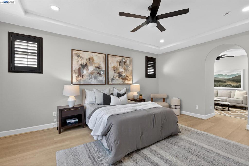 Many upgrades—perfect move-in ready home. Largest home in the Gale Ranch Iriana neighborhood, featuring the best-looking elevation with a balcony. Excellent location—walk to all 3 top San Ramon schools. Well-connected downstairs layout with a living room featuring a fireplace, separate dining area, butler’s pantry, powder room, and gourmet kitchen with extended counters, cabinets, island seating, breakfast nook, gas range, stainless appliances, and granite countertops, plus a family room with a media niche. Upstairs features a primary bedroom with a lavish bath and walk-in closet; bedroom 2 is currently used as a retreat; bedroom 3 includes an attached bath suite and balcony; bedrooms 4 and 5 share another common bathroom; and there is convenient upstairs laundry with cabinetry. Check optional idea picture to add 1 more bed, 1 full bath downstairs. $100K+ in upgrades. Owned solar system, water softener, purifier, fans in all rooms, and a finished garage with designer flooring, storage cabinets, and Tesla EV charger. Landscaping includes pavers in the back and side yards. Well-cared-for home with brand-new upgrades, including top-quality luxury vinyl flooring with soft underlayment, moldings, taller baseboards, new interior paint, modern electrical ceiling lights with night light feature, modern vanity lights and fixtures, new fence paint, and more. Low HOA dues, well-maintained Mosaic community rec center, clubhouse, two pools (large pool and children’s wading pool), and numerous parks and trails nearby. Open Fri, Sat & Sun.