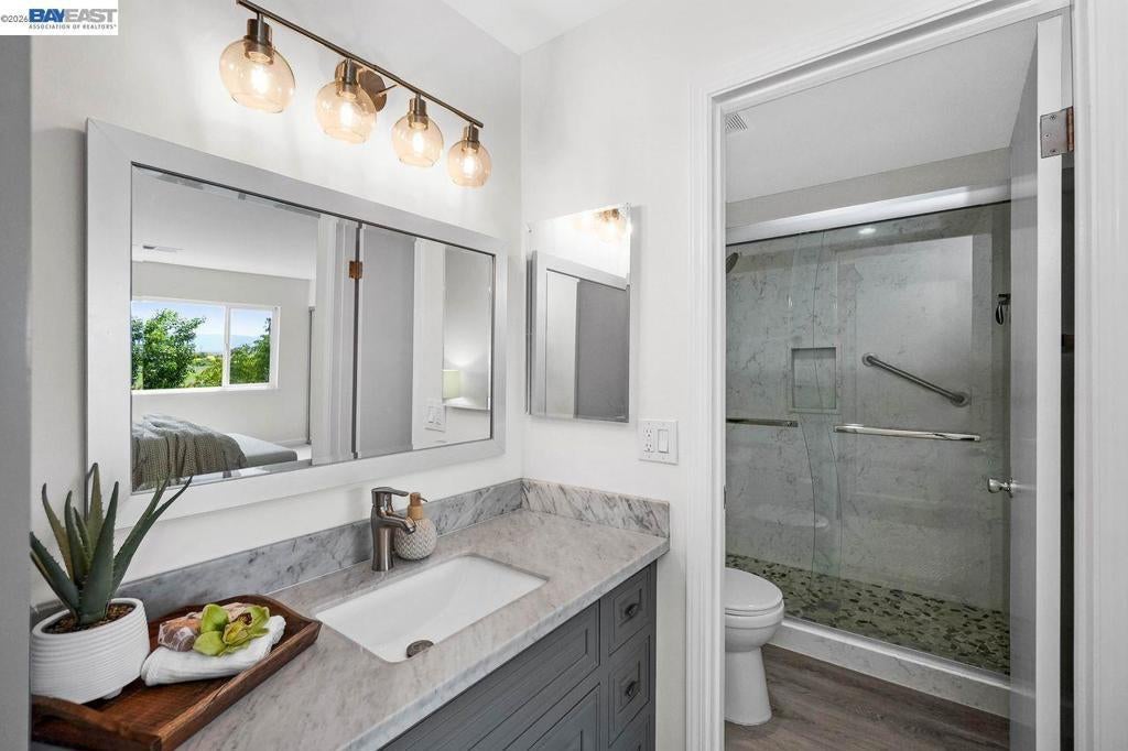 Welcome to one of Newark’s most unique homes (northeast facing)—offering rare privacy, scenic views, and no rear neighbors thanks to the Don Edwards National Wildlife Refuge just beyond your backyard. Built in 1975, this 4-bedroom, 2.5-bath home—with a loft converted into a fourth bedroom—offers approximately 1,953 sq ft of living space on an oversized 7,590 sq ft lot. The updated eat-in kitchen features stone countertops, beautiful cabinetry, laminate flooring throughout the first floor, and stainless-steel appliances. The spacious living area showcases a cozy fireplace, while multiple living spaces are filled with natural light. Recent improvements include a permitted new roof, fresh interior paint, and updated bathrooms with new vanities, tile, and fixtures. The primary suite is located upstairs alongside the additional bedrooms, creating a functional and comfortable layout. Ideally located for both convenience and lifestyle, the home offers quick access to I-880 and the Dumbarton Bridge. Outdoor enthusiasts will enjoy nearby Bridgepoint Park, Coyote Hills, and Alameda Creek Trail, while families benefit from walking proximity to Lincoln Elementary and Challenger School just minutes away. With its rare setting, added living space, and thoughtful updates, this move-in-ready home blends comfort, convenience, and small-town charm—an opportunity you won’t want to miss.