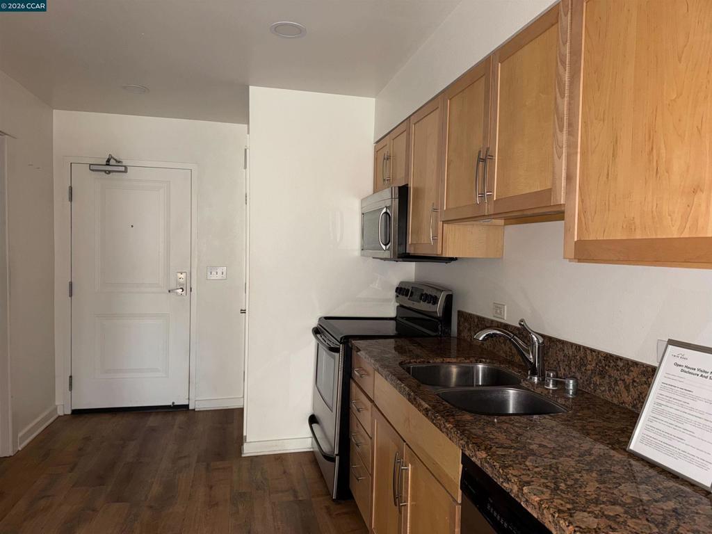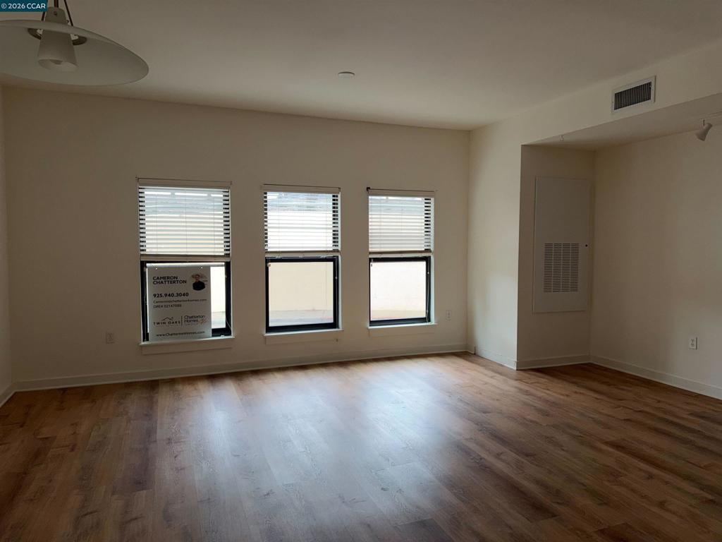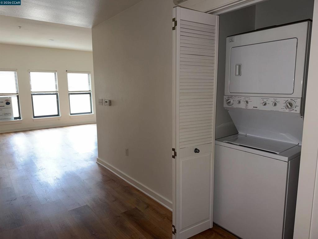 Spacious ground-floor studio condo with an open layout in the heart of downtown San Jose. Enjoy the convenience of urban living just steps from public transit, major freeways, dining, shopping, and entertainment. This well-designed unit features granite countertops, stainless steel appliances, and distinct spaces for dining, living, and sleeping. Laminate floors run throughout, and there's a laundry closet with a stacked washer and dryer for added ease. The building offers secured, gated underground parking with an assigned space and an elevator for quick access to both the unit and garage. Relax in the serene courtyard with its lush landscaping and calming water fountain. Ideally located near San Pedro Square, San Jose State University, and the SAP Center ("Shark Tank"), with everything downtown has to offer right outside your door. Sold as-is.