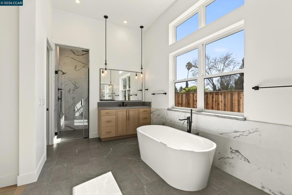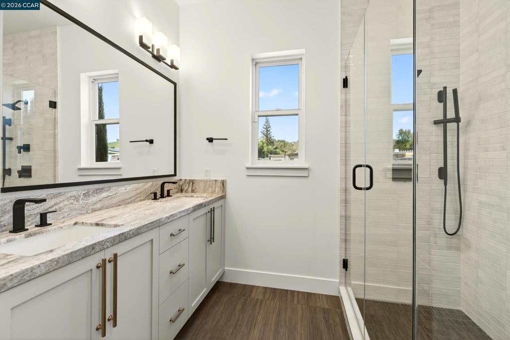 Single-level sophistication marks this exquisite Davidon Homes residence, set within one of Napa’s most sought-after gated communities. Designed with versatility and comfort in mind, the main home features 4 spacious en suite bedrooms, including a beautiful primary retreat with radiant-heated bath floors, a fireplace, and 2 custom walk-in closets. A junior primary suite at the other end of the home offers an ideal space for guests or extended family. The open-concept kitchen alongside the expansive Great Room will be the centerpiece of family life and entertainment. The chef's kitchen features granite countertops and a fully equipped back kitchen with a second refrigerator, microwave, sink, dishwasher, pantry and closet space. The Great Room opens to a covered outdoor patio with a gas fireplace for year-round enjoyment. Work from home is easy in the spacious study alongside. An attached, yet private, 1BD/1BA ADU, with a full kitchen, living room and laundry, provides a seamless option for multigenerational living or a guest residence. Additional highlights include 16 owned solar panels, a security system, pre-wired surround-sound, Ring doorbell, radiant flooring, and premium concrete hardscaping. It’s just minutes to downtown Napa, Highway 29, world-class wineries and recreation. *Digitally altered images