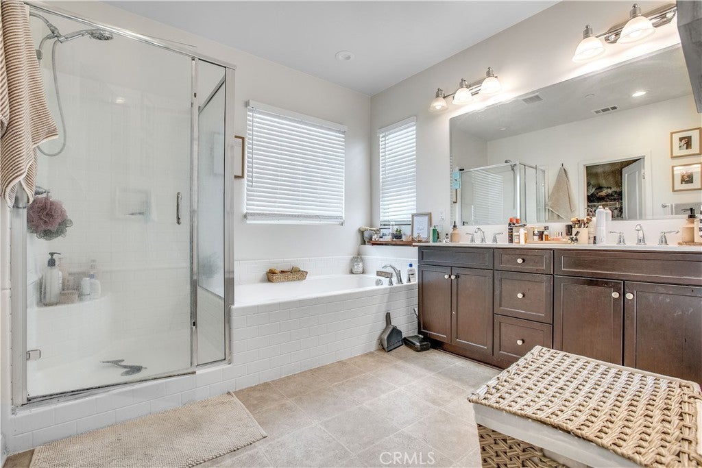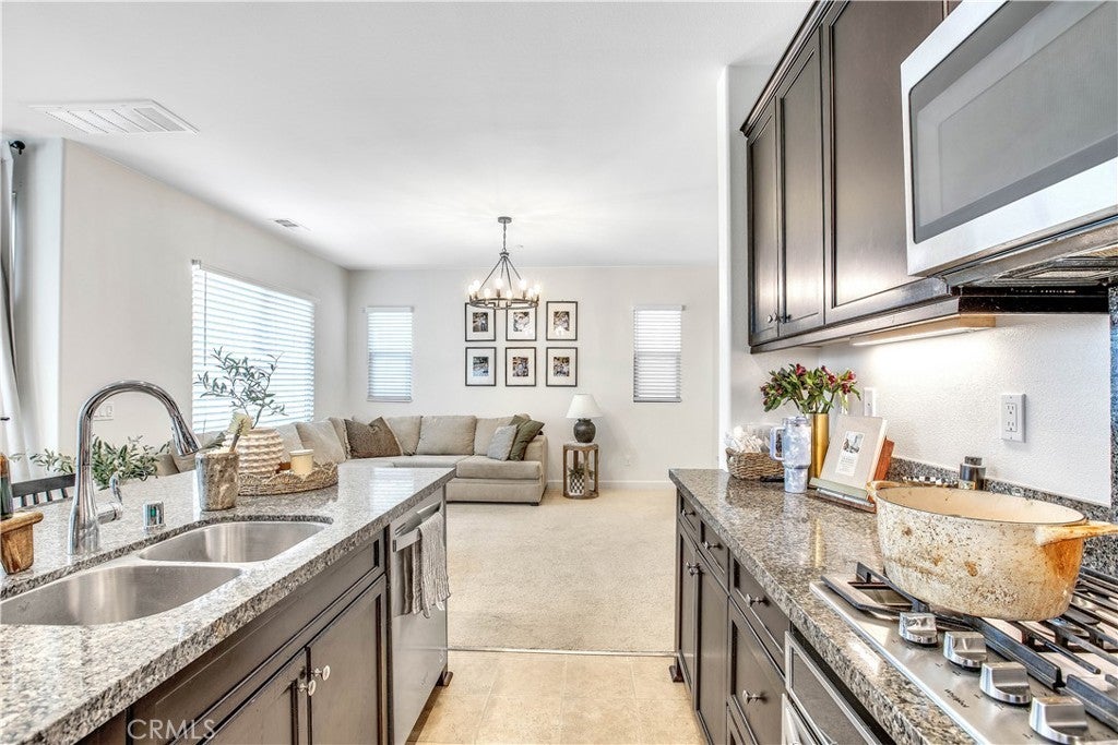 Located in the desirable “The Preserve” community of Chino, this beautifully designed two-story home welcomes you with a charming front porch and an inviting, open layout. Step into a bright foyer that leads to a convenient downstairs bedroom with a full bath—ideal for guests or multigenerational living. The heart of the home is the expansive open-concept living area, featuring a designer kitchen equipped with stainless steel appliances, ample counter space, and a large center island—perfect for meal prep and entertaining. A spacious dining area is accented by a large window, creating a warm, light-filled space for everyday meals and special gatherings. Upstairs, the luxurious owner’s suite offers resort-style comfort with an oversized walk-in closet, dual sinks, an oval soaking tub, a separate enclosed shower, and a private toilet area. Thoughtful details continue with an upstairs laundry room and additional well-sized bedrooms—ideal for a growing family or a home office setup. The Preserve’s resort-style clubhouse offers a wealth of amenities for residents to enjoy. Situated on a spacious three-acre site, the clubhouse features a fully equipped fitness center, a game room, and a variety of recreational options. Outdoor amenities include two lighted tennis courts, a junior Olympic-sized swimming pool, a relaxing barbecue area, and more—perfect for entertaining, staying active, or simply unwinding close to home.