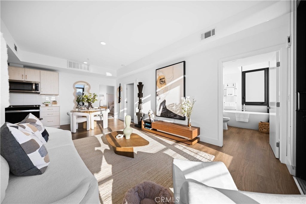 MW Lofts Pasadena represents the pinnacle of modern urban living in one of Southern California’s most desirable locations. For sale for the first time, this brand new condominium project features 115 units. Unit 502 is a 2 bedroom, 2 bathroom floor plan with multiple balconies with sweeping views of the city. The spacious kitchen opens into a great room with an abundance of sunlight. The primary bedroom is en-suite, with floor to ceiling windows leading to the balcony. The secondary bedroom has access to the south-facing balcony, and the secondary bathroom features a separate tub. Laundry is included and in-room. Window shades included. 2 parking spots included. This sophisticated condominium combines cutting-edge design with refined elegance, offering spacious, open-concept floor plans, high-end finishes, and panoramic views of the surrounding city and mountains. Each residence is carefully crafted with premium materials and expansive windows that flood the interiors with natural light. Residents of MW Lofts enjoy exclusive amenities, including controlled access, a state of the art fitness center, private rooftop lounge, and terrace, all in close proximity to Pasadena’s finest dining, shopping, and cultural landmarks