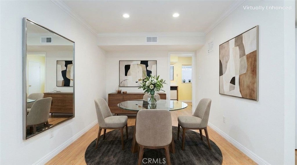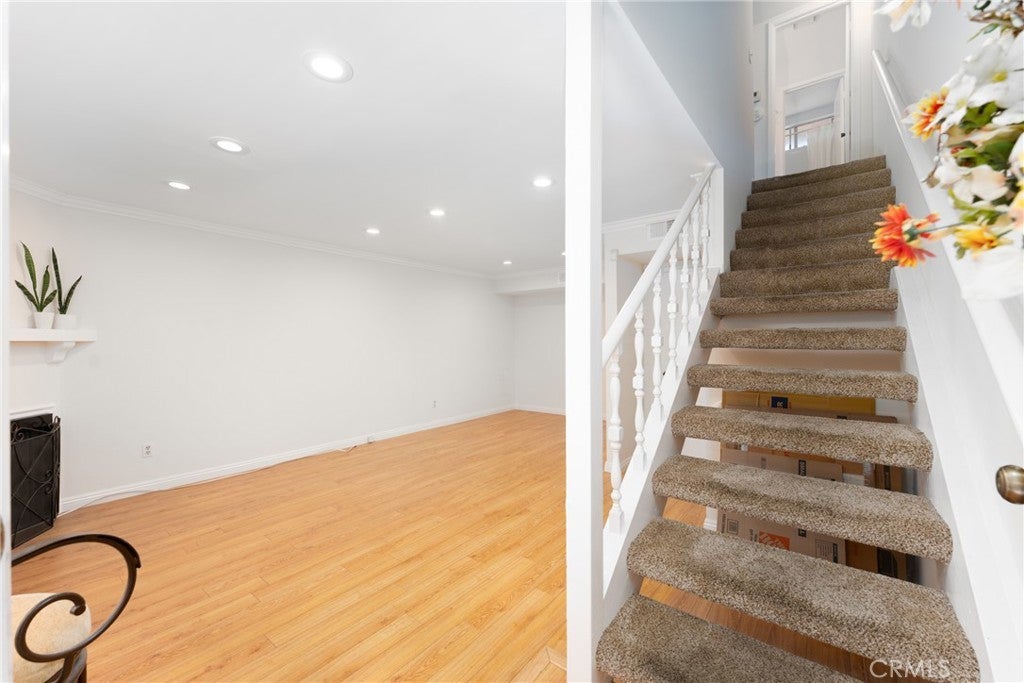 New Price for this lovely Light filled 2 bedroom, 2 bath townhouse located in a private gated community, with only 8 units. The inviting living room complete with cozy fireplace, and recessed lighting is open to the dining area leading to step saver kitchen with breakfast area and lovely garden window. Ample cabinets, gas stove, microwave, refrigerator, and dishwasher ready for the chef in you. Washer and dryer are included in their recessed area in the kitchen. A conviently located half bath completes the downstairs. upstairs are two bedrooms with ample closet space, double door entry and vaulted ceilings enhance the primary bedroom. Laminate wood flooring downstairs, Central heat and air, crown moulding, and wide slat blinds throughout give this home the upscale feeling it deserves. Very low HOA makes this home a rare opportunity. Large courtyard area with plenty of room to gather for family barbcues and al fresco dining. One car gated parking and large storage room are useful and practical. New roof and fence installed 2025. Conviently located between Lake and Allen gold line stops and easy freeway access, also PCC, Cal Tech, and Art Center are close by along with Old town Pasadena shops and Rose Bowl just to name a few highlights.
