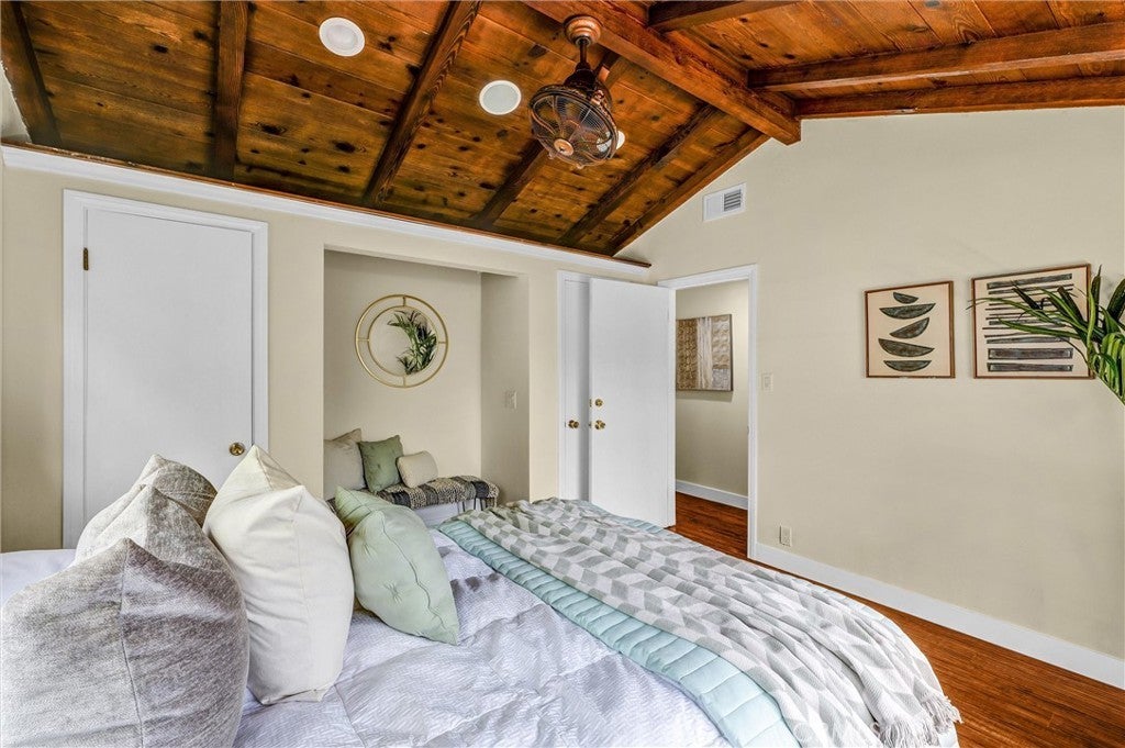 • Interior FeaturesOpen Floorplan, Recessed Lighting, All Bedrooms Down, Bedroom on Main Level, Walk-In Closet(s), Beamed Ceilings, Built-in Features, Eat-in Kitchen, Primary Suite, Separate/Formal Dining Room