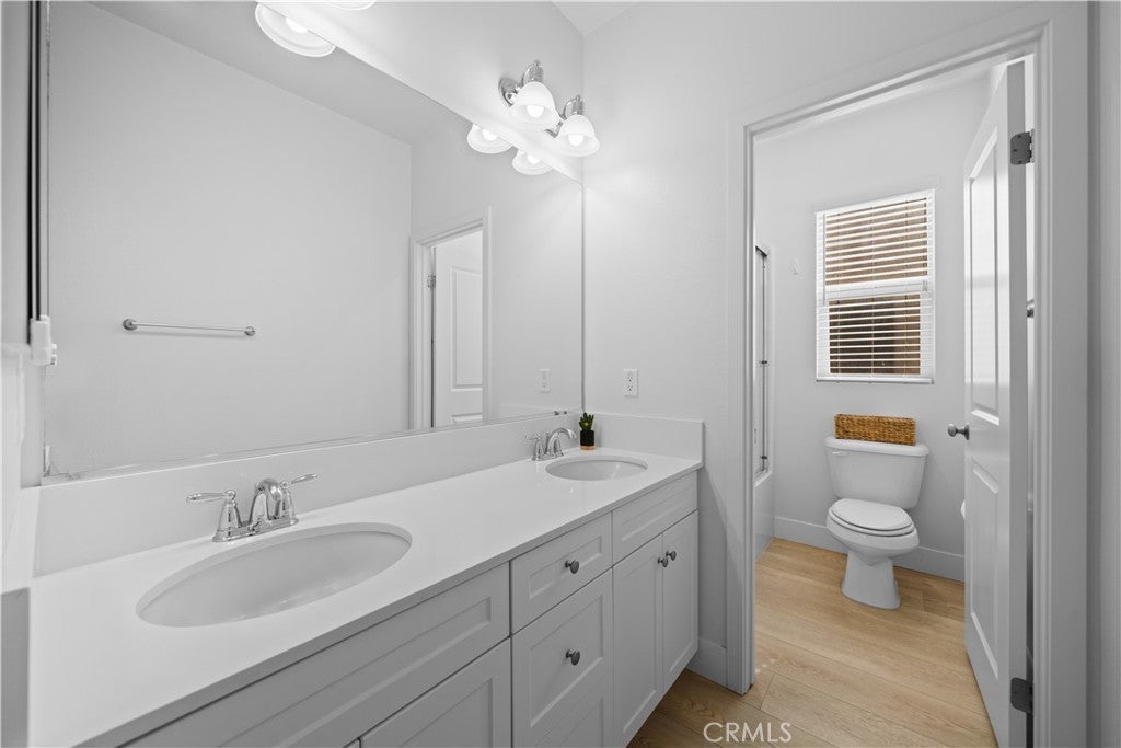 Welcome to this elegant 4-bedroom, 3-bath home in the highly desirable Preserve at Chino community! A charming front porch and classic European-style architecture lead you into a bright open-concept living space filled with natural light. The spacious great room seamlessly connects the living, dining, and kitchen areas — ideal for both family gatherings and entertaining. The modern gourmet kitchen showcases stainless-steel appliances, granite countertops, sleek white cabinetry, and a large island perfect for casual dining or hosting guests. A downstairs bedroom with a full bath offers flexibility for an in-law suite, home office, or guest retreat. Upstairs features three additional bedrooms, a versatile loft, and a convenient laundry room. The primary suite is a true retreat with dual vanities, a soaking tub, separate shower, and a generous walk-in closet. Step outside to a low-maintenance, fully paved backyard — perfect for relaxing weekends or evening gatherings. The home also includes an attached two-car garage and a tankless water heater for added efficiency. Residents of The Preserve enjoy resort-style amenities including a fitness center, pool and spa, clubhouse, library, parks, playgrounds, and scenic walking trails. The HOA maintains front yard landscaping for a worry-free lifestyle. Conveniently located near top-rated schools, shopping, and freeways — this move-in-ready home truly has it all.
