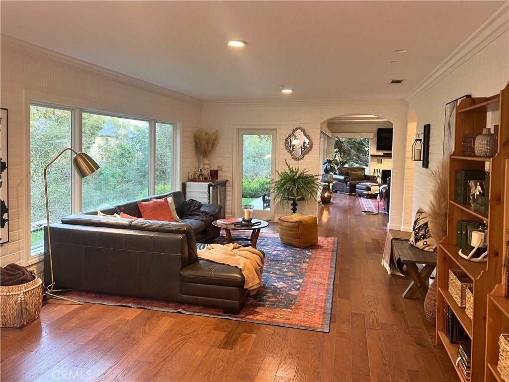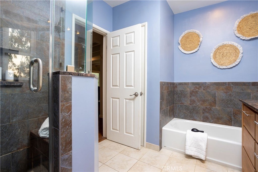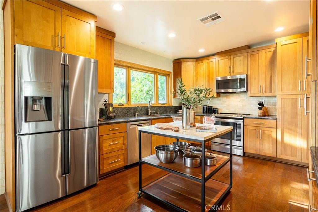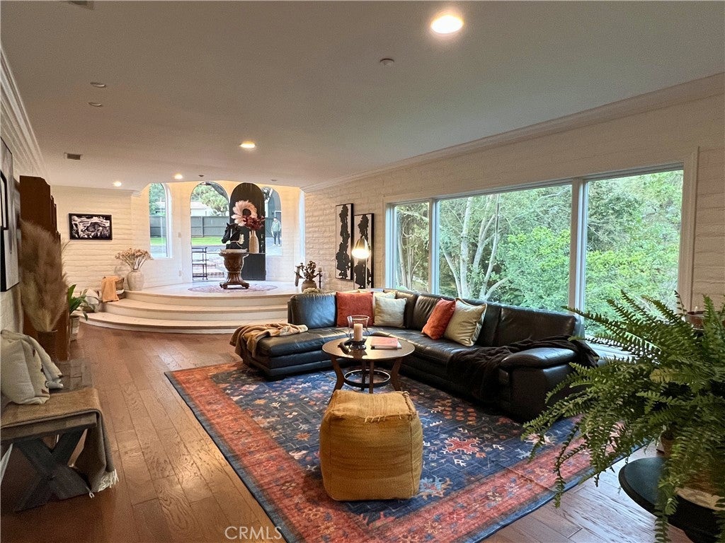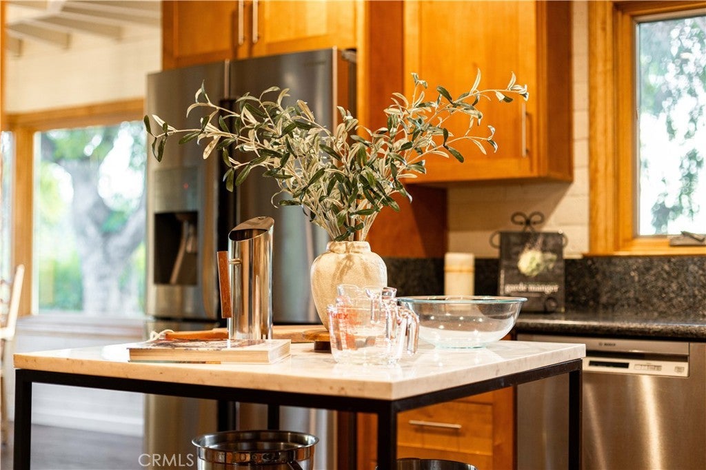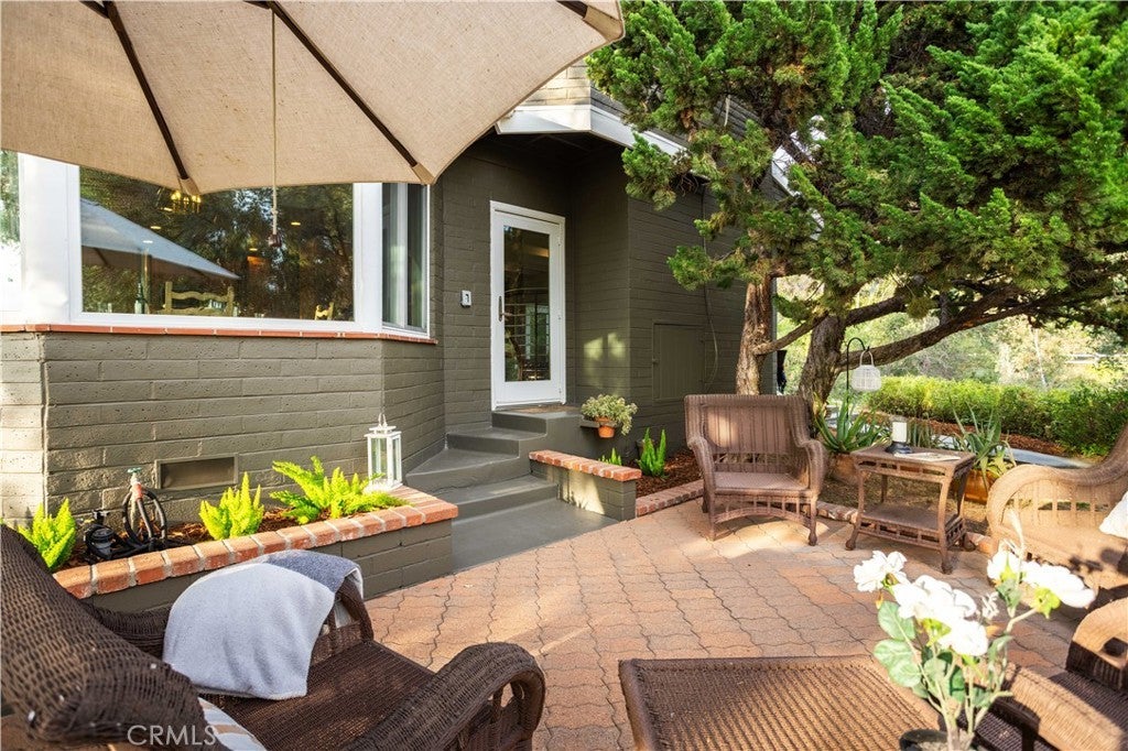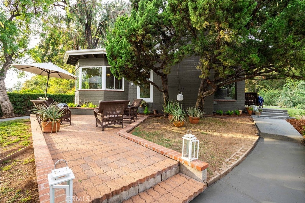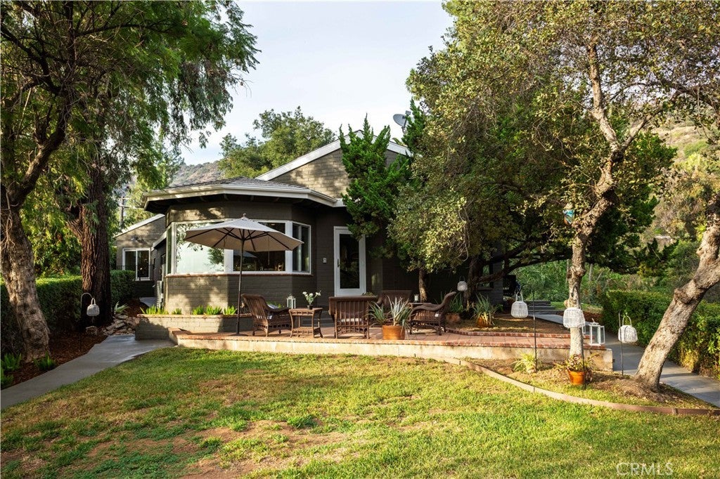 Calling all nature enthusiasts! This exceptional single-level home, set on a sprawling 39,250 sq. ft. lot in highly desirable North Monrovia, offers a rare combination of privacy, space, and modern efficiency. Sited behind a private fence and beautifully shaded by a mature oak tree, the property feels like a secluded retreat. The thoughtful, open floor plan is designed for both comfortable daily living and entertaining. Inside, you'll find a formal living room and a spacious Great Room featuring a cozy fireplace, designated dining area, and walls of windows that perfectly frame the views of the lush, expansive grounds. The kitchen is appointed with ample Shaker-style cabinetry, granite countertops, and built-in appliances. The primary retreat is thoughtfully tucked away for maximum privacy, boasting a walk-in closet and an adjoining bathroom with a dual-sink vanity. Two additional bedrooms and a secondary bathroom, also featuring a dual-sink vanity and a separate tub and shower. The outdoor space is a true highlight, offering several patio areas ideal for entertaining - a blank slate perfect for installing a pool or realizing a variety of other outdoor visions as well as a large, flat pad accessible by a winding path. Additional amenities include wood flooring, central air and heat, a dedicated utility room, and recent interior and exterior painting. The home is an all-electric residence powered by an owned solar system, offering significant energy efficiency. Parking is plentiful with a detached 2-car garage featuring upper storage, plus several uncovered spaces. Experience the best of North Monrovia living in this unique, private setting.