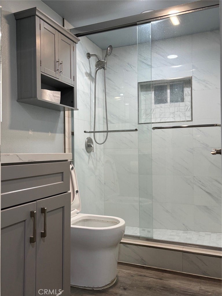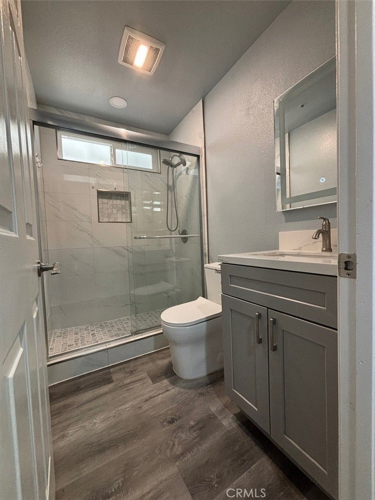 This Super Sharp turnkey home is located in northern Fontana. From the moment you arrive, you’re greeted by gorgeous custom double iron entry doors. Many recent improvements and upgrades have been completed. The interior and exterior of the home has been repainted. This home has four bedrooms and 2.5 bathrooms. One bedroom and bathroom are located downstairs. The spacious living areas are bright and welcoming, enhanced by recessed lighting and a cozy fireplace. The gourmet kitchen is a true showpiece with custom cabinetry and granite countertops, all complemented by recessed lighting and upgraded fixtures. The bathrooms have been completely remodeled with custom vanities and tiled walk-in showers.