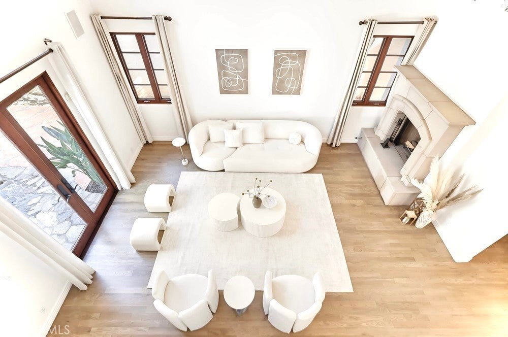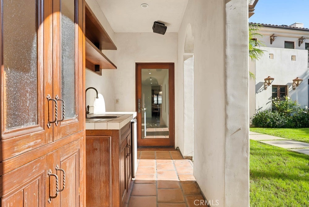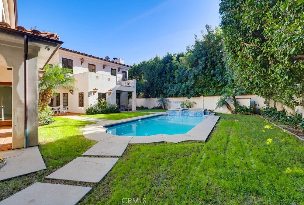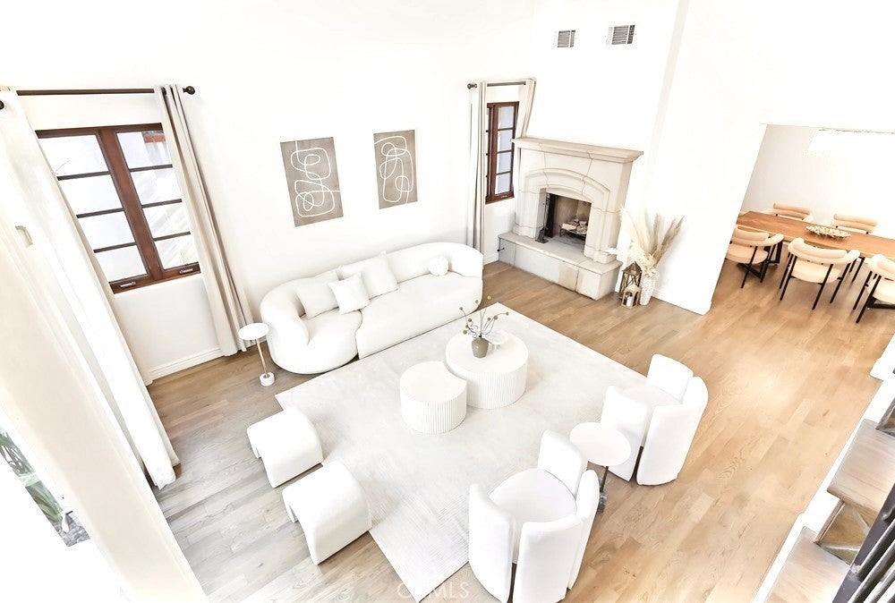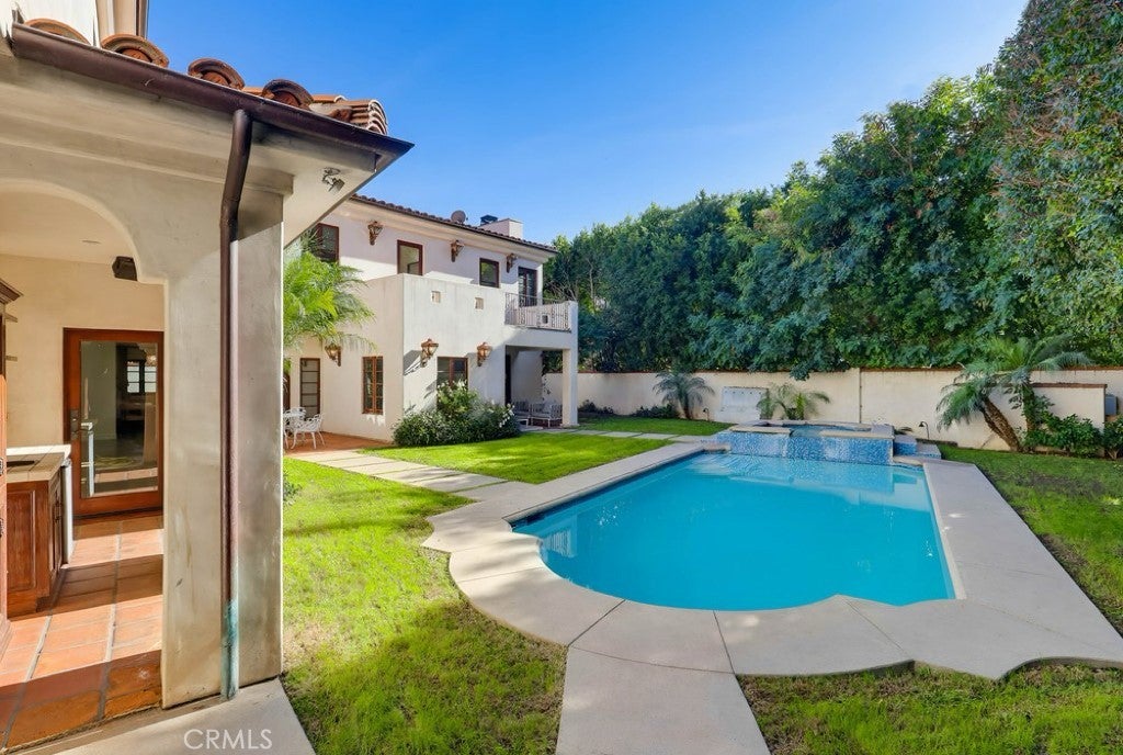 Villa de Estrella — A Private Spanish Oasis in Prestigious Outpost Estates. Hidden behind gates on a rare corner lot, Villa de Estrella offers an extraordinary sense of privacy in one of the most prestigious enclaves of the Hollywood Hills. Mature trees and lush, layered landscaping surround the home on all sides, creating a peaceful oasis that feels worlds away—yet sits moments from Runyon Canyon, studios, and the Sunset Strip. A grand foyer opens into sun-filled living spaces framed by soaring ceilings, graceful archways, and multiple sets of French doors that invite natural light and connect seamlessly to the outdoors. The formal living and dining rooms flow effortlessly into a spacious chef’s kitchen and adjoining family room, offering an ideal environment for both everyday living and elegant entertaining. A versatile en-suite bedroom with its own entrance serves perfectly as an office, guest suite, or creative studio. Upstairs, generously scaled guest rooms accompany a serene primary retreat with vaulted ceilings, expansive closet space, and a spa-inspired bath. The backyard is the home’s crown jewel—a true resort-style sanctuary with a large pool, spa, fire pit lounge, and full outdoor wet bar, all wrapped in lush greenery that ensures exceptional seclusion rarely found in this central Hollywood location. Combining timeless Spanish character with the livability and volume of a modern estate, this gated residence offers the best of both worlds: the tranquility of a private retreat and the convenience of a premier Hollywood address.