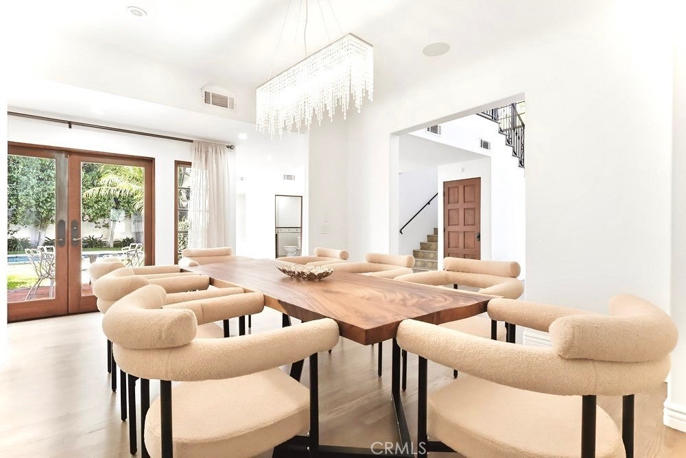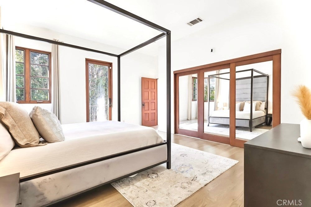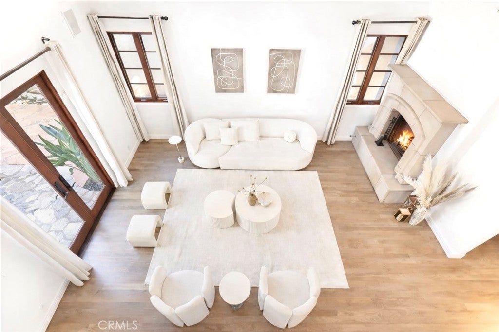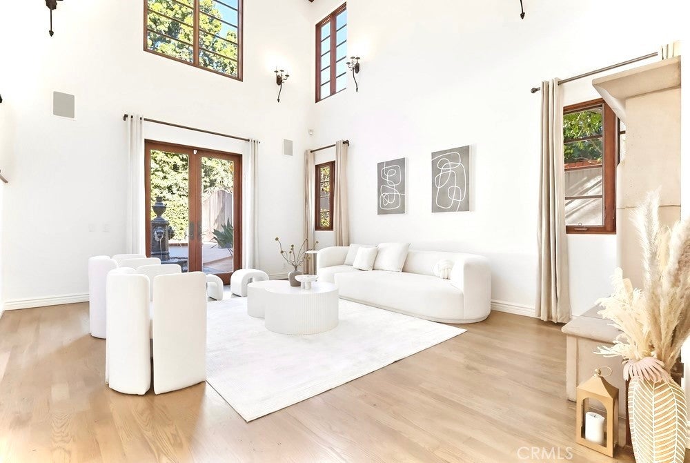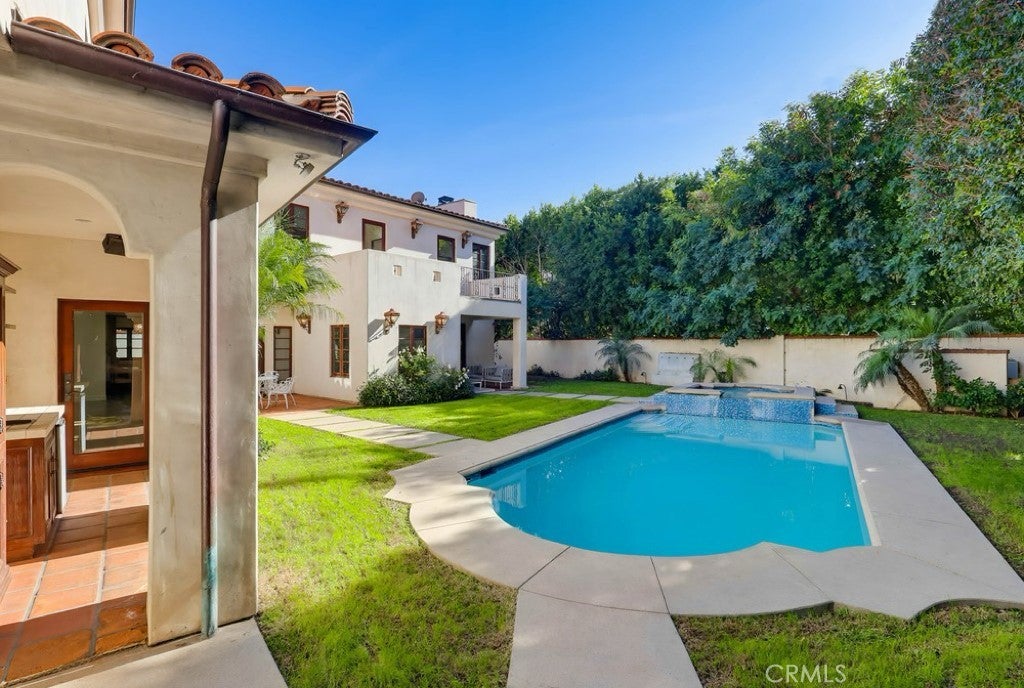 Villa de Estrella — A Private Spanish Oasis in Prestigious Outpost Estates. Hidden behind gates on a rare corner lot, Villa de Estrella offers an extraordinary sense of privacy in one of the most prestigious enclaves of the Hollywood Hills. Mature trees and lush, layered landscaping surround the home on all sides, creating a peaceful oasis that feels worlds away—yet sits moments from Runyon Canyon, studios, and the Sunset Strip. A grand foyer opens into sun-filled living spaces framed by soaring ceilings, graceful archways, and multiple sets of French doors that invite natural light and connect seamlessly to the outdoors. The formal living and dining rooms flow effortlessly into a spacious chef’s kitchen and adjoining family room, offering an ideal environment for both everyday living and elegant entertaining. A versatile en-suite bedroom with its own entrance serves perfectly as an office, guest suite, or creative studio. Upstairs, generously scaled guest rooms accompany a serene primary retreat with vaulted ceilings, expansive closet space, and a spa-inspired bath. The backyard is the home’s crown jewel—a true resort-style sanctuary with a large pool, spa, fire pit lounge, and full outdoor wet bar, all wrapped in lush greenery that ensures exceptional seclusion rarely found in this central Hollywood location. Combining timeless Spanish character with the livability and volume of a modern estate, this gated residence offers the best of both worlds: the tranquility of a private retreat and the convenience of a premier Hollywood address.