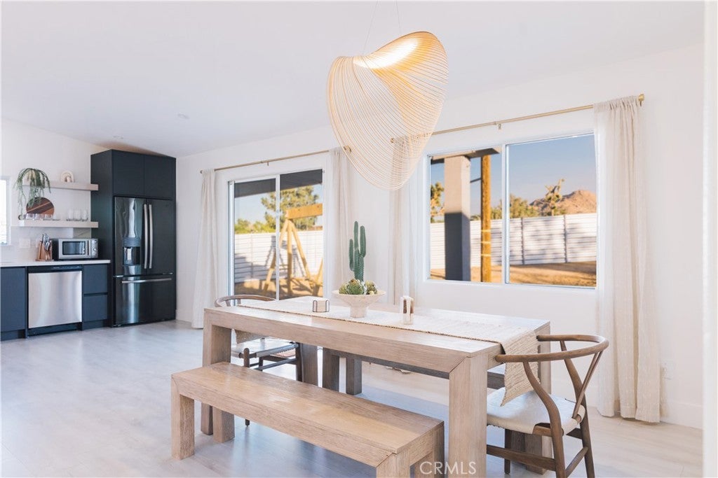 Owner-user vacation home with an established and permitted short-term rental use. This turnkey "Smart" vacation home is fully fenced and features 3 bedrooms and 2 baths on an oversized ½-acre lot in the desirable Friendly Hills area of Joshua Tree. The property includes a new pool with spa and sunk-in fire pit, new fencing, and a completely renovated interior. The home offers expansive mountain views, a large dining area with sliding glass doors, and a kitchen with new black stainless steel appliances, including a gas stove, dishwasher, and sink. The home is located minutes from the entrance to Joshua Tree National Park and local amenities. Additional features include a SmartHome system operated via smartphone apps (HVAC, pool temperature, lights, spa, and locks), excess land with potential for an ADU, a new water heater, and backyard entertainment areas. The home was remodeled in 2023, with a fully fenced backyard for privacy and security. It is approximately 5 minutes from Joshua Tree downtown and 12 minutes from the park entrance, in a quiet neighborhood next to a government-protected area that limits nearby development. The heated pool and spa, built in 2023, are app-operated. The property is approximately 45 minutes from Palm Springs. The home has been listed on Airbnb and VRBO, receiving 5-star ratings. The Airbnb listing and maintenance vendors may transfer for a smooth transition. Historical rental income information is available from the listing agent upon request.