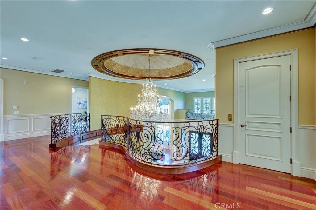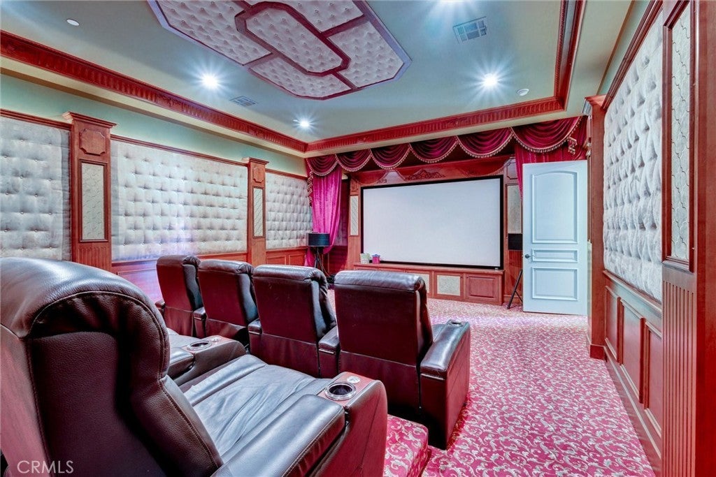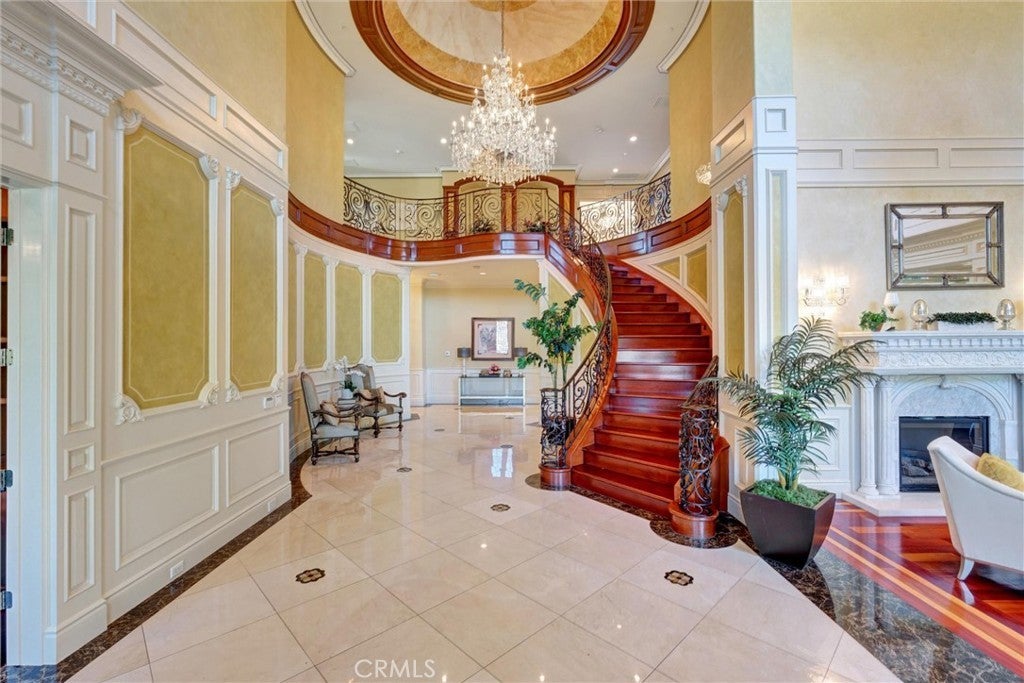 This luxurious, modern French-style home in Arcadia showcases exceptional architectural design and craftsmanship. Upon entering, you are greeted by a dramatic 25-foot cathedral ceiling, stunning 6-foot crystal chandeliers, a marble foyer, and grand double glass-and-iron doors. The property is gated and private. The residence features six bedroom suites—two on the main level and four upstairs—along with seven bathrooms, a formal living room, a formal dining room, and a spacious family room with a wet bar overlooking the beautifully landscaped backyard. The outdoor area includes a saltwater pool and spa, a basketball court, and a patio ideal for entertaining. Additional highlights include an 8-seat Blu-ray/3D home theater, a private elevator, a separate wok kitchen, a wine cellar, and professional Viking appliances, brand new carpet, new paint. Elegant details such as coffered ceilings, crystal chandeliers, Italian marble, granite finishes, custom moldings, a security camera system, and an intercom system complete this exquisite home. A must-see property!