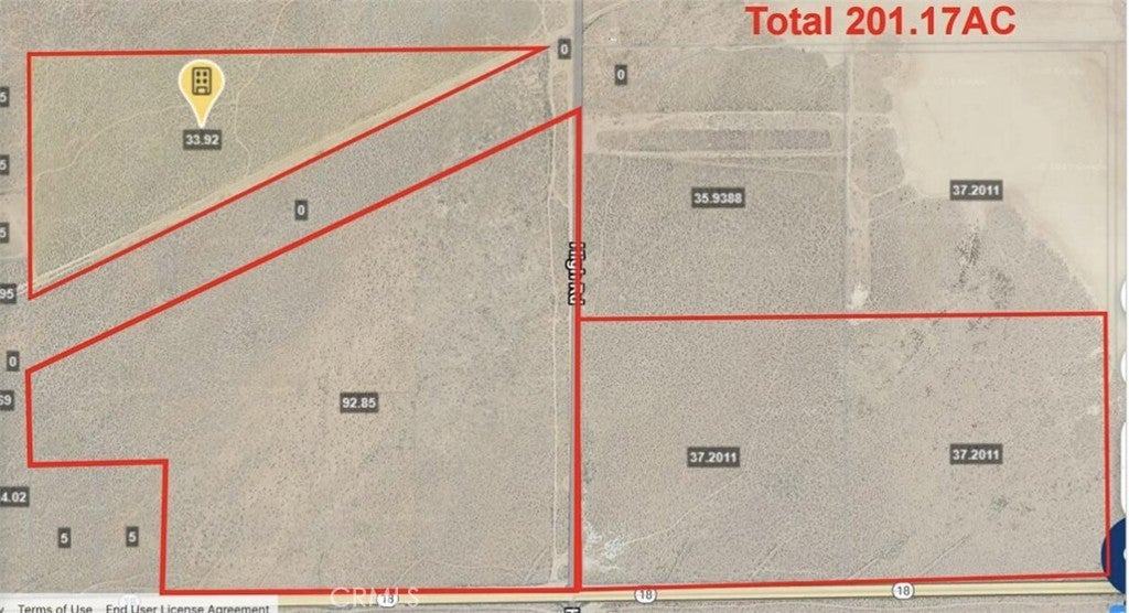 Offered for sale is approximately ±201.17 acres of contiguous land located at 28710 CA-18 in Apple Valley, California. The property features direct frontage along Highway 18 (CA-18), a primary east–west transportation corridor connecting Apple Valley and Victorville to Big Bear Lake and the San Bernardino Mountains. The site is entirely flat and fully usable, with no hillside or sloped terrain, providing a significant advantage for future planning, agricultural use, estate development, or land banking. Utilities, including electrical service, are available along the roadway, distinguishing the property from remote desert parcels lacking infrastructure access. Zoned RL (Rural Living), the property allows for low-density residential uses, ranch and estate homes, agricultural uses, and related rural uses, subject to county and town requirements. The zoning supports long-term ownership strategies, including large-parcel subdivision (subject to approval), agricultural operations, or private estate holdings, while maintaining controlled density and land-use stability. Highway 18 serves as one of the primary access routes to Big Bear Lake, a year-round regional tourism destination, generating consistent daily traffic volume and long-term visibility. Additionally, the property is situated within the broader Victor Valley / High Desert growth area, which continues to benefit from regional infrastructure investment and long-term population and tourism trends, including anticipated impacts from the Brightline West high-speed rail corridor. Large, flat parcels with highway frontage, utilities at the street, and clear zoning designations are increasingly scarce in this submarket. This offering presents an opportunity for investors, land banking groups, agricultural users, or estate buyers seeking scale, access, and long-term positioning along a major Southern California travel corridor.