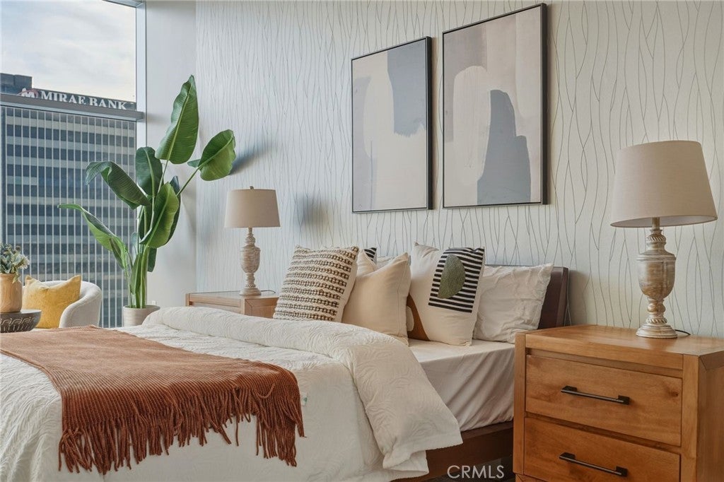 This condo sets the bar for the views in Koreatown!! Bright and airy south-facing residence on the 10th floor of The Summit on Sixth, featuring 2 bedrooms, 2.5 baths, and floor-to-ceiling windows that frame sweeping city views. Soaring 11-foot ceilings enhance the sense of space in this modern urban sanctuary. This thoughtfully designed home offers luxury finishes and an open layout flooded with natural light. With two en-suite bedrooms, this versatile residence is ideal as a primary home, investment property, or sophisticated living space for discerning professionals and students. The Summit on Sixth is a distinguished architectural condominium in Wilshire Center, bordering vibrant Koreatown. Residents enjoy an elevated lifestyle with 24-hour security, a state-of-the-art fitness center, entertainment-ready golf simulator, sophisticated social lounge and more. The prime central location provides seamless access to Downtown LA, Hollywood, Beverly Hills, world-class dining, dynamic nightlife, premier shopping, and Metro transit.