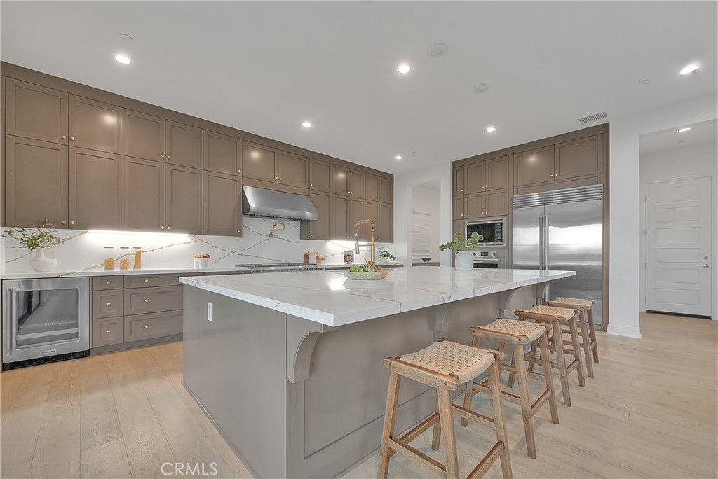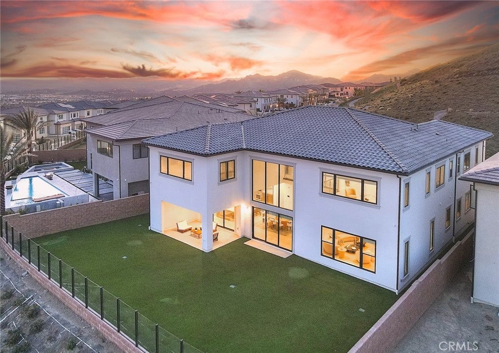 Rare Toll Brothers Pacific Italiente residence—one of the most sought-after floor plans in Westcliffe—located behind the guard gates of Westcliffe, one of Porter Ranch’s most exclusive luxury communities. Completed in 2024, this contemporary Craftsman estate offers 5,567 sq ft of sophisticated living with 5 bedrooms, 5.5 bathrooms, a spacious loft, private office, and a 3-car garage, all set on an oversized, flat premium lot. A long private driveway creates a true estate-style arrival, providing exceptional privacy, flexible guest parking, and an immediate sense of distinction. An oversized front yard enhances curb appeal and delivers a feeling of space uncommon in newer luxury tracts. Elevated outlooks provide partial city, valley, and mountain view moments, while the home’s west-facing orientation offers pleasant afternoon shade for comfortable outdoor enjoyment throughout the day. Inside, a dramatic foyer showcases dual floating staircases, setting the tone for the home’s architectural presence. The expansive great room features double-height ceilings and floor-to-ceiling windows, seamlessly connecting indoor and outdoor living while filling the home with natural light. The designer chef’s kitchen is anchored by a premium Wolf appliance suite with Sub-Zero refrigeration, custom marble countertops and backsplash, an oversized center island, walk-in pantry, and curated high-end finishes elevated above builder-standard selections. Upgraded European Oak hardwood flooring throughout delivers a clean, modern, move-in-ready aesthetic. The primary suite serves as a private retreat, offering a spacious sitting area, dressing room, oversized walk-in closet, and spa-inspired ensuite bath. Expansive glass doors open to a large wraparound backyard, ideal for entertaining and everyday enjoyment. Additional highlights include fully owned solar (no lease), pre-wiring for custom speakers, and thoughtful design upgrades throughout—making this a truly better-than-new opportunity with premium selections already completed. Ideally located near The Vineyards at Porter Ranch with premier shopping, dining, and entertainment—including Whole Foods and AMC—plus convenient access to SR-118 with connectivity to I-405 and I-5 for commuting throughout the Valley and greater Los Angeles.