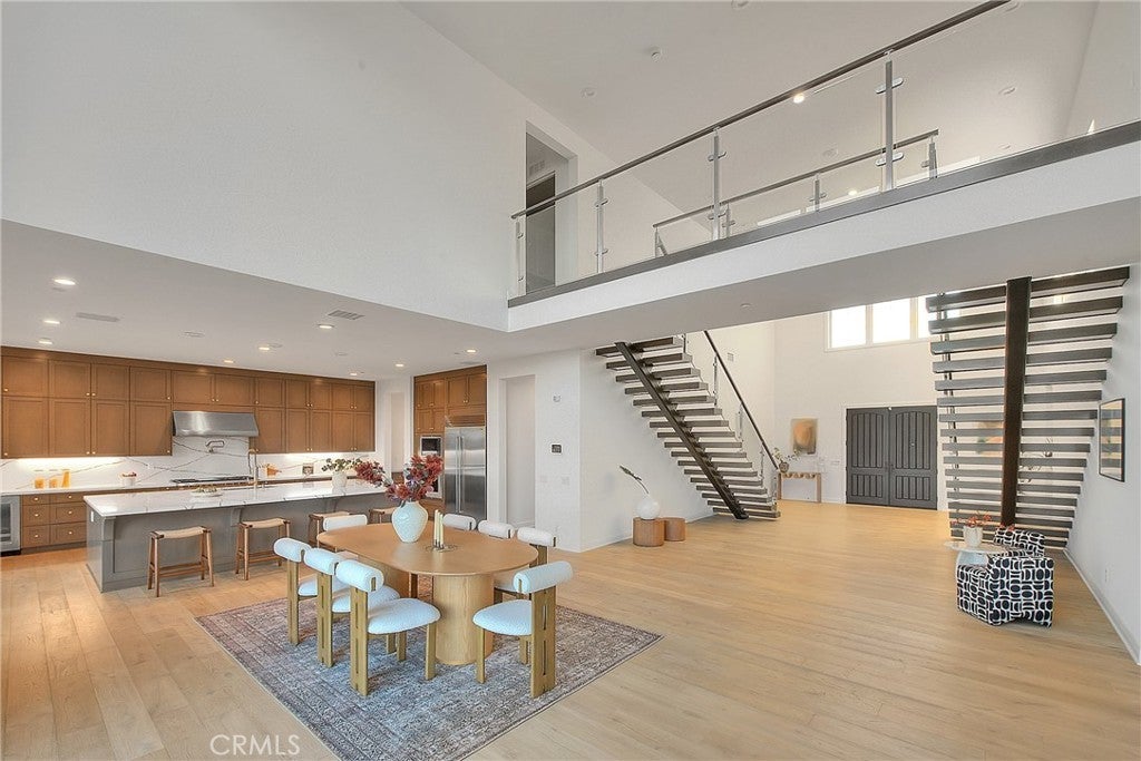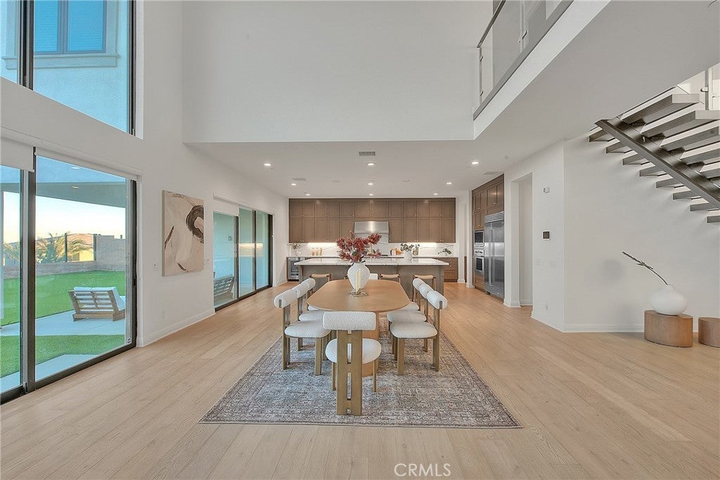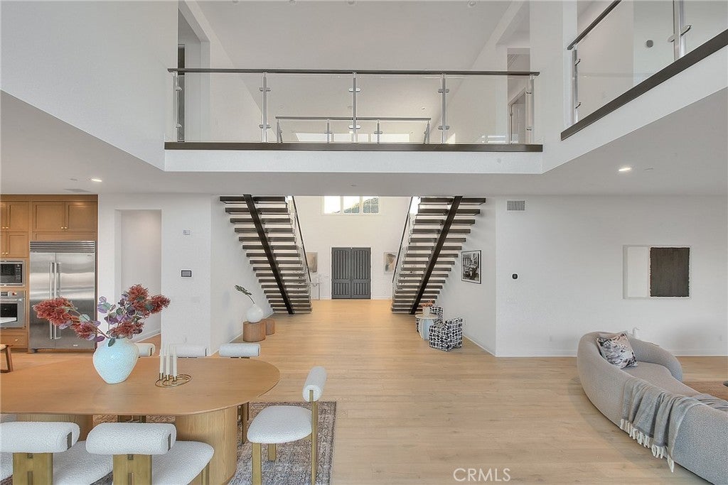 • Interior FeaturesBreakfast Bar, Cathedral Ceiling(s), Eat-in Kitchen, High Ceilings, In-Law Floorplan, Open Floorplan, See Remarks, Bedroom on Main Level, Primary Suite, Walk-In Closet(s), Multiple Staircases, Quartz Counters, Unfurnished