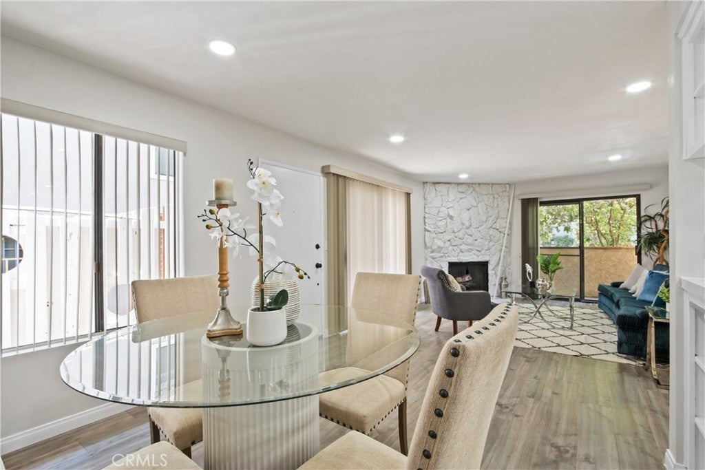 This bright and stylish 2-bedroom, 2-bathroom one-level condo is ideally located inside gated community on a quiet, tree-lined street in prime Westwood. The front-facing unit enjoys abundant southern exposure, filling the open-concept living and dining area with natural light and featuring laminate wood flooring, a cozy fireplace, and access to both a private balcony and a spacious outdoor patio. Both kitchen and two bathrooms are modern and tastefully updated. Additional features include central heating and air conditioning, two-car tandem parking in a secure underground garage and extra storage etc. Just minutes from UCLA, shopping, dining, theaters, and more, this home offers the perfect blend of location, convenience, and contemporary living.