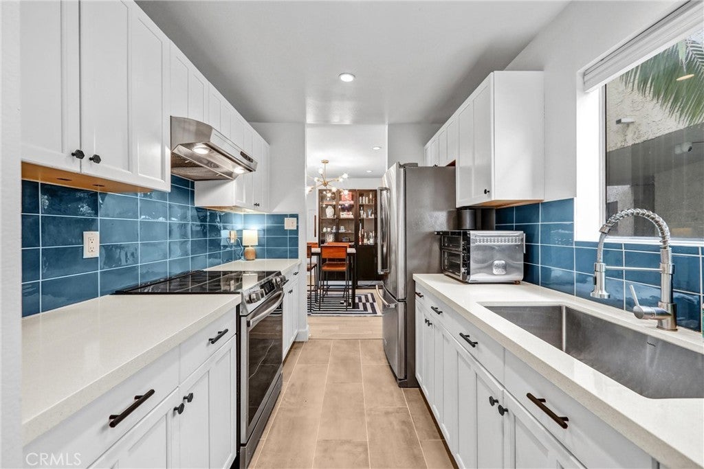 Welcome to 8400 De Longpre Ave, Unit #212 — a fully updated 2-bed, 2-bath residence with city views in the heart of West Hollywood’s iconic Sunset Strip. Perched above a quiet, tree-lined street just moments from Sunset Plaza, world-class dining, and luxury hotels, this modern sanctuary blends style, comfort, and unmatched convenience. Step inside to an open-concept living and dining space filled with natural light, framed by a sliding glass door showcasing the stunning city outlook. Thoughtfully upgraded throughout, the home features a clean, contemporary aesthetic with updated flooring, recessed lighting, and curated designer wallpaper accents in both the living room and primary bedroom, adding a sophisticated, personalized touch to each space. The remodeled kitchen offers both form and function, complete with stainless steel appliances, quartz countertops, updated cabinetry, and a modern backsplash. The spacious primary suite serves as a private retreat, boasting designer wallpaper, ample closet space, and an ensuite remodeled bathroom. The second bedroom and full guest bath are equally stylish, perfect for visitors, a home office, or a flexible second suite. Additional highlights include abundant updated storage and two side-by-side parking spaces — a rare luxury in West Hollywood. Residents enjoy amenities including a year round heated sparkling pool, hot tub, and an expansive rooftop deck with panoramic 360-degree views spanning the city skyline and Hollywood Hills. Perfectly positioned between Sunset Blvd and Fountain Ave, Unit #212 offers sophisticated living in one