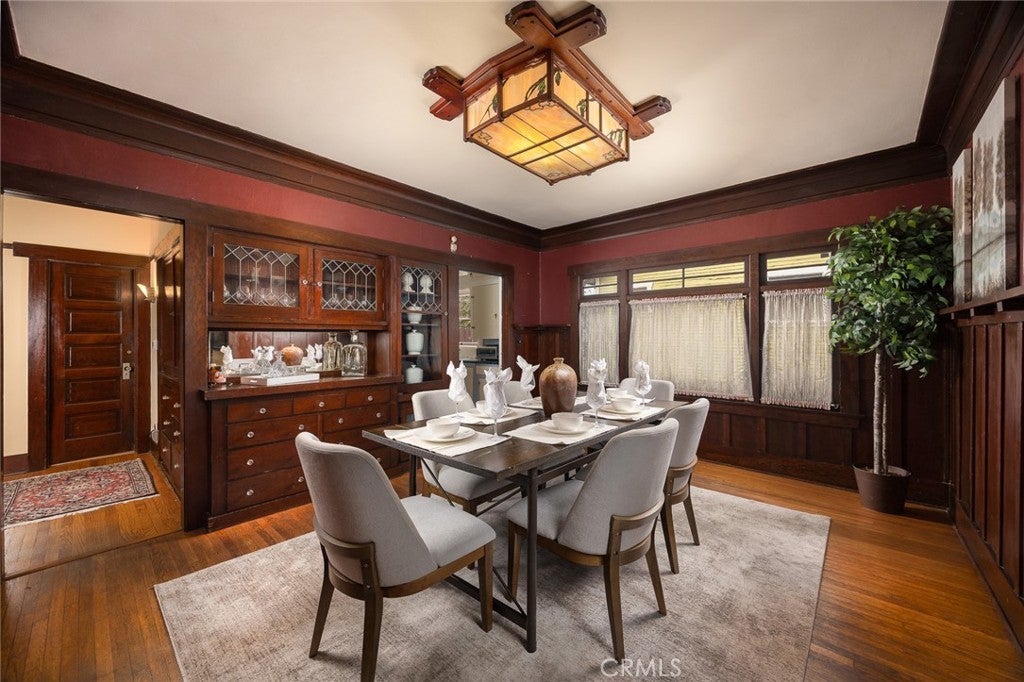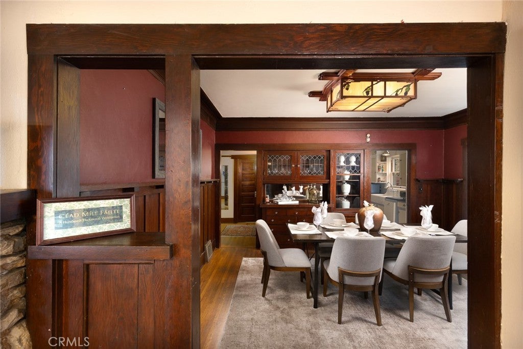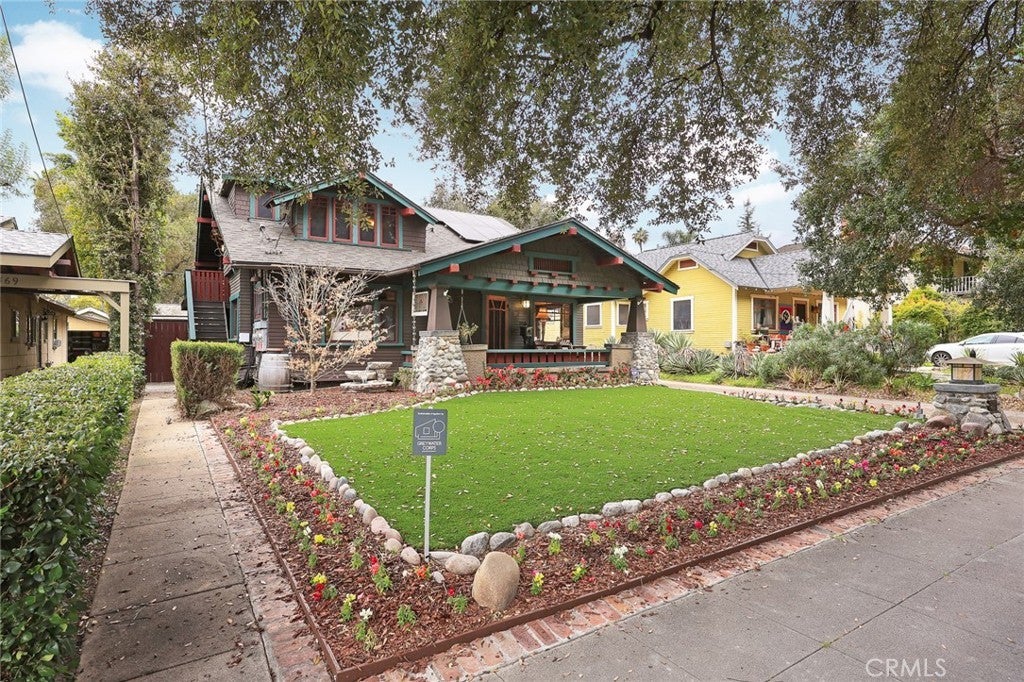 Fabulous restored Craftsman home on a picturesque, tree-lined street near the highly sought-after Bungalow Heaven neighborhood. This architectural gem blends timeless Craftsman character with modern upgrades, offering a rare opportunity to own a piece of Pasadena history. Situated on beautifully landscaped grounds, the property features two homes on one lot. A spacious front porch welcomes you into the main residence with hardwood floors, classic wood moldings, and original built-in cabinetry showcasing true Craftsman detail. Originally configured as a triplex, the property retains three separate meters, offering flexibility for multi-generational living or potential income use (buyer to verify). The main house offers five bedrooms and three bathrooms. The living room features a distinctive clinker brick fireplace, rich wood detailing, and abundant natural light. A formal dining room is ideal for entertaining, and a private office with a closet can function as an additional bedroom. Three bedrooms are located on the main level, with two upper-level en-suite bedrooms, each with its own kitchen, bathroom, and separate meter. The kitchen offers generous storage and connects to a bright breakfast nook overlooking the backyard, plus a dedicated laundry room nearby. The property qualifies for the Mills Act for potential property tax benefits; application and approval required through the City of Pasadena (buyer to verify eligibility). The backyard provides a private outdoor retreat with a Hawaiian-style gazebo, hot tub, grassy area, and mature landscaping. A newly completed 669 Sq Ft ADU includes one bedroom, one bathroom, and a modern kitchen with a large island—ideal for guests, extended living, or rental income. Recent improvements include updated HVAC and ducting, two tankless water heaters, newer roof, and fully paid solar. Low-maintenance artificial turf enhances curb appeal. Conveniently located near shopping, local markets, restaurants, Metro Gold Line, and major freeways.