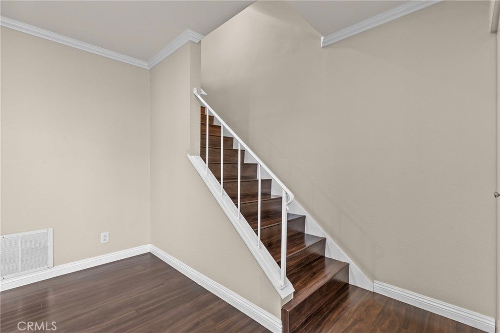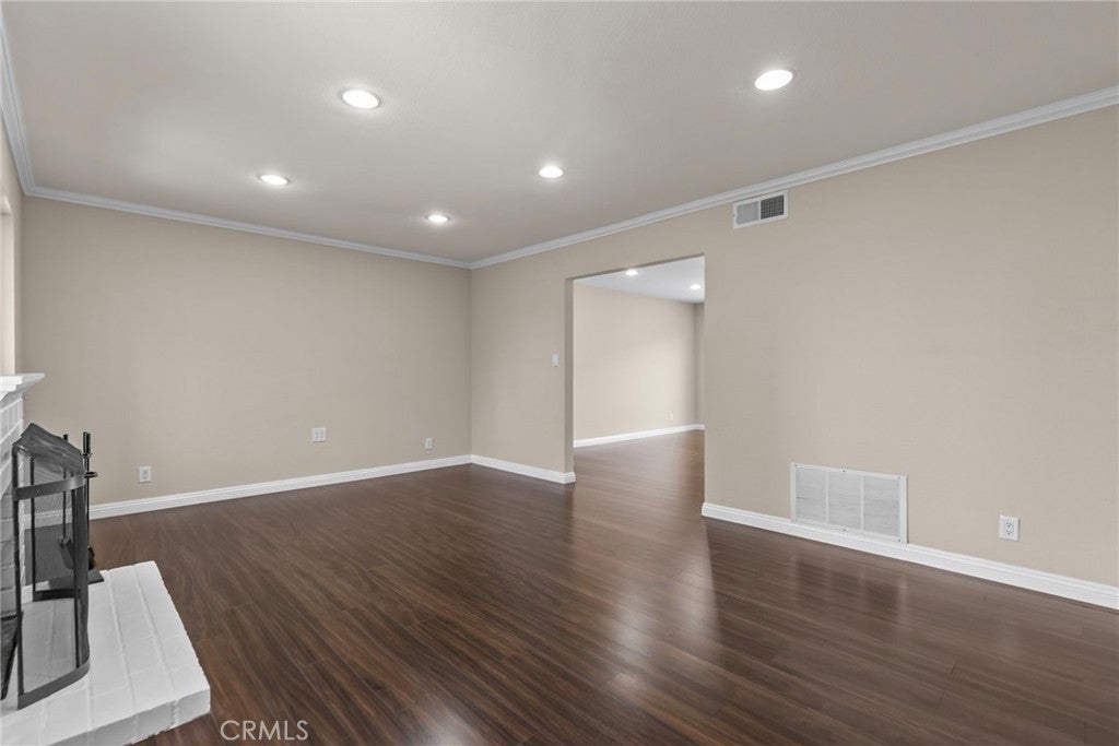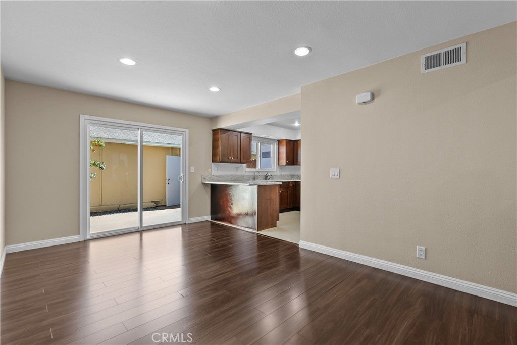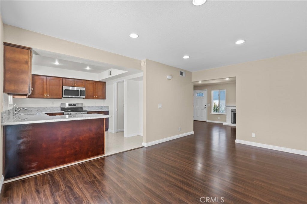 A Rare Find and Highly Sought-After End Unit 2-story 4 bedroom 1.5 bath townhome in a quiet community of Harbor Valley. Central A/C and heating, recessed lighting, new interior paint, wood laminate flooring throughout, tile flooring in kitchen and bathrooms. 2 car garage with direct access to the patio and a roll-up garage door. Plus an extra parking with permit on first come first serve basis. Solid entry door opens to a spacious living room, crown molding, full of natural light with crackling white brick fireplace, which connects seamlessly to the dining room with sliding door that opens to a private patio. The kitchen has been beautifully designed with wood cabinetry, granite counter tops, stainless steel appliances with brand new dishwasher, brand new total convection air fry self-cleaning electric range, and a microwave. A huge inside laundry room with washer and dryer hookups and storage space is conveniently located next to the kitchen and an adjacent half bathroom. All 4 bedrooms upstairs, most have mirrored closets. Spacious linen storage. The primary bathroom offers separate tub and shower combo. Just steps to community amenities: sparkling pool, pickleball/tennis court, basketball, playground and a clubhouse for social events. HOA covers roof care, exterior painting and landscaping. Short drive to Mile Square Park, Beach, Recreation, Shopping, Restaurants, Freeway Access. WELCOME HOME!