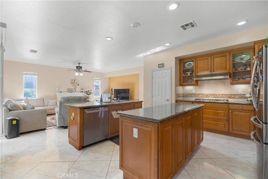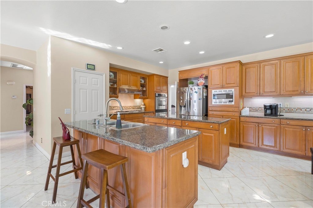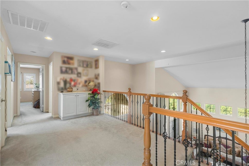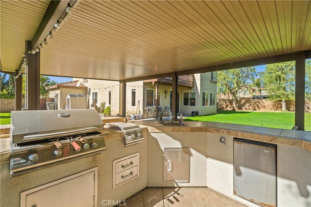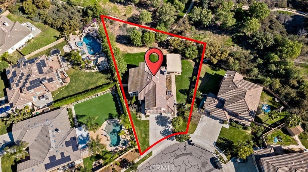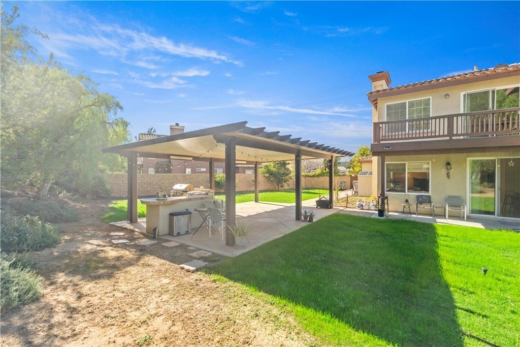 Welcome to this stunning luxury home, nestled in a quiet cul-de-sac in Corona. Built in 2006, this beautiful home offers 3,287 SF of luxury living space on a huge 17,860 SF. The open-concept design is perfect for family living and entertaining. Features include a grand foyer, soaring 2-story high ceiling, and luxury wood shutters throughout. The gourmet kitchen with double islands and built-in appliances is a chef’s dream. The main level includes a guest bedroom and full bath, perfect for visitors or multi-generational living. Upstairs, the spacious loft can be used as a second family room or easily converted into a 5th bedroom to meet your needs. The oversized master suite offers a peaceful retreat with a luxurious bath featuring a separate shower and soaking tub, as well as his and her walk-in closets, boasts a private balcony with lush hillside views – ideal for a relaxing morning coffee. The backyard oasis is perfect for outdoor entertaining, with a covered patio, built-in BBQ/bar, manicured landscaping, and a garden area for home-grown vegetables. Additional features include a 3-car garage, easy access to freeways, and proximity to shopping, dining, and downtown. Whether you're hosting friends or enjoying a quiet evening at home, this property has it all!Come and make this dream home yours – truly a perfect place to call HOME!