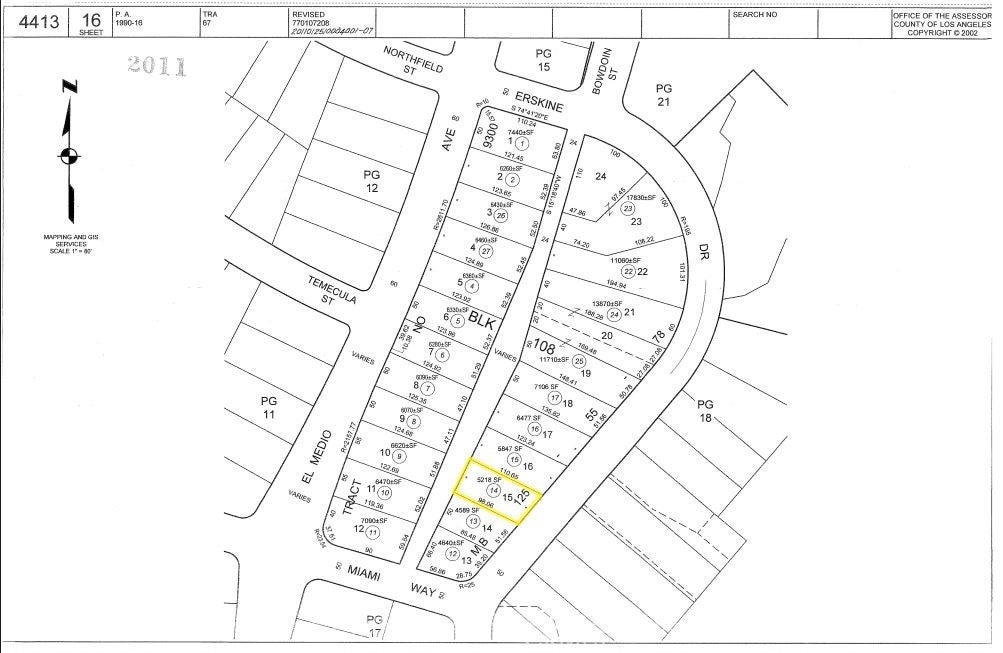 Rare opportunity to own a vacant residential lot in the highly sought-after neighborhood of the Pacific Palisades. Seize your chance to be part of the exciting revitalization of one of Los Angeles' most beautiful and famous coastal communities. Erskine drive is a highly converted street with charm, a prime location with no rear neighbor. A gentle elevation from the street provides lively views across Temescal Canyon. Property will be sold in its present "as is" condition.