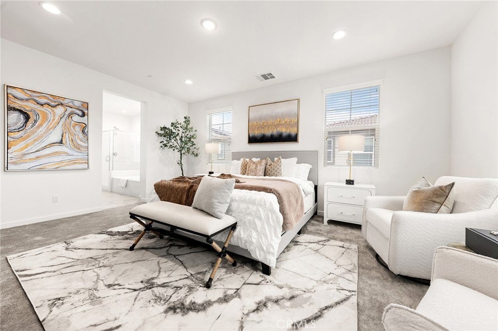 Walk to the brand-new New Haven Elementary School (opening August 2026)! Located in the highly desirable Ontario Ranch community of Ontario, this brand-new, never-lived-in home offers modern design, energy efficiency, and exceptional convenience. The thoughtfully designed layout features a downstairs bedroom and full bath, ideal for guests or multi-generational living. The open-concept kitchen and living area showcase a large quartz island, stainless steel appliances, and abundant cabinetry, flowing seamlessly to a private, low-maintenance backyard — perfect for everyday living and entertaining. Upstairs offers a spacious loft, two secondary bedrooms sharing a full bath, and an expansive south-facing primary suite filled with natural light. The primary bedroom features an oversized walk-in closet and a well-appointed bathroom. Fully paid-off solar panels provide valuable long-term energy savings. Situated on a quiet street just minutes from Costco, 99 Ranch Market, major shopping centers, Ontario International Airport, and the upcoming Ontario Sports Empire, this home combines lifestyle convenience with strong future growth potential. A rare opportunity to own a turnkey, energy-efficient home in one of Ontario’s fastest-growing, family-friendly neighborhoods.