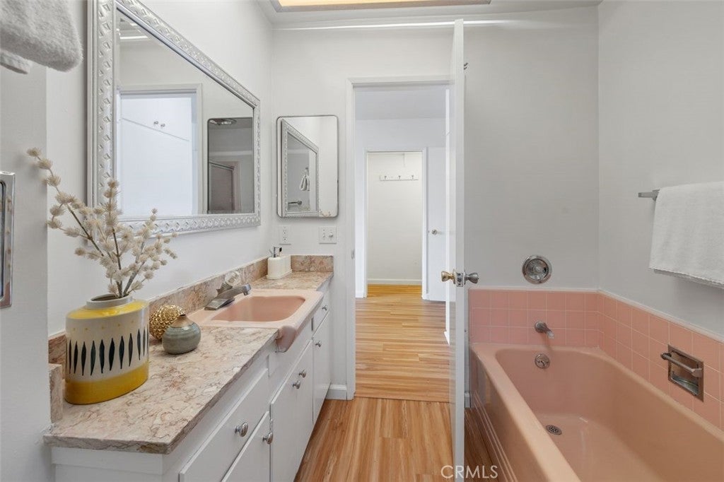 Incredible location at a spectacular price! This is your chance to contribute to Pasadena history. The community, Whispering Waters, is a Pasadena Historic Landmark and one of the area's most beloved Mid-Century Modern properties. It was designed to make the most of year-round inviting light. The living room, with floor to ceiling glass doors, has riveting views of the San Gabriel Mountains. But wait, there's more! All of the South Lake Avenue city life is right outside. This end-unit on the ground floor has TWO bedrooms and TWO bathrooms that have been updated and remodeled. The primary bedroom has a large, re-designed dressing closet. All this is contained within +/- 1,200SF of living space. The bright kitchen offers plenty of room to whip up a fantastic meal. Need storage? Oh, so much storage inside with shelving, drawers, and closets! The underground parking offers your very own dedicated garage! The 1-car garage has space for a single vehicle plus room for overflow storage. Enjoy easy access to Pasadena's most popular shopping, dining and cultural institutions. Caltech, PCC and so much more are just outside your secured and gated front door with video security. Water utility is included in HOA fees. The Mills Act designation offers owners reductions on annual property taxes. This is a rare opportunity to live in a space that makes Pasadena famous. Come live in a landmark!