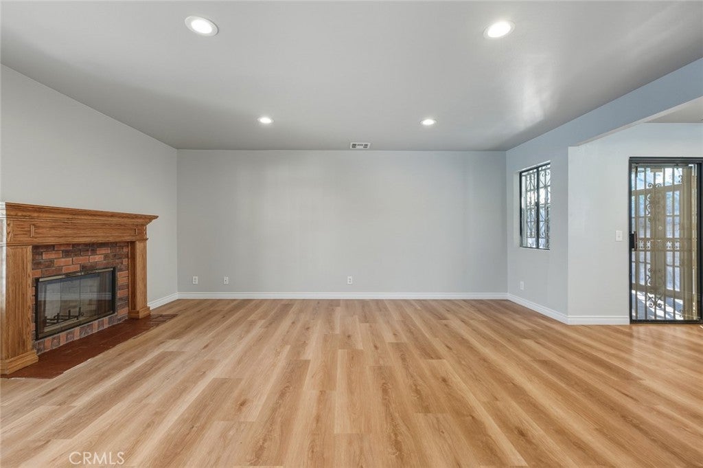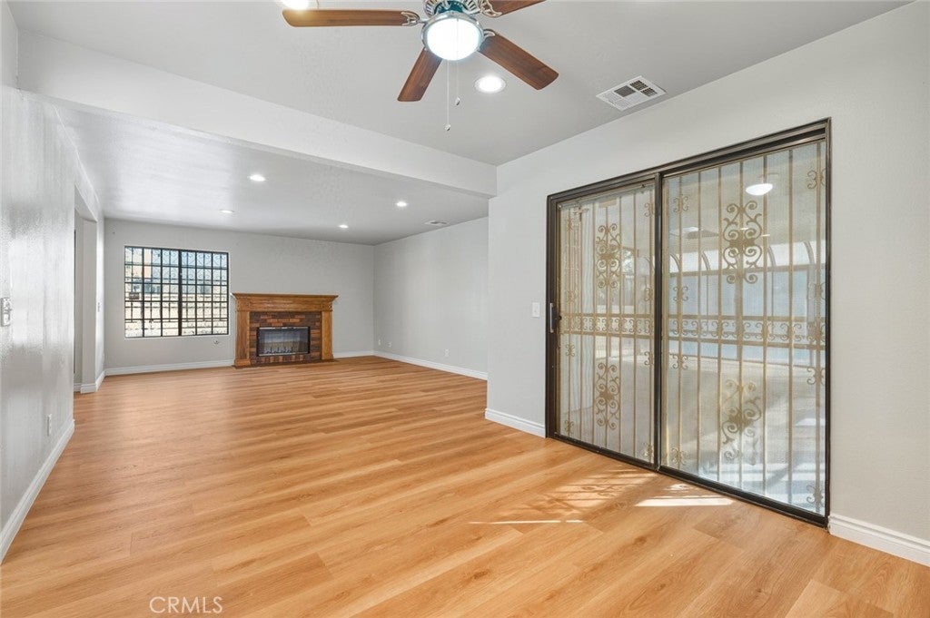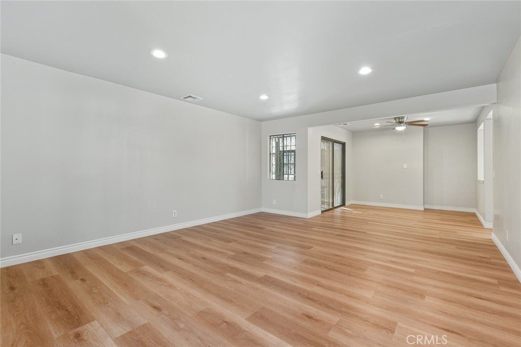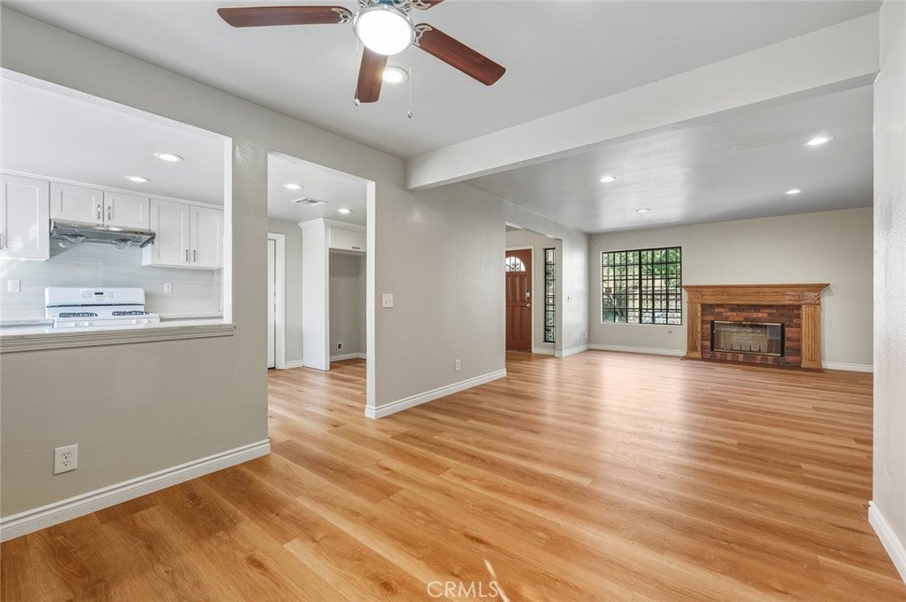 Beautiful two-story single-family residence offering a spacious and functional floor plan with abundant natural light throughout. The home features expansive living and dining areas with vinyl flooring, recessed lighting, and a charming fireplace, creating an inviting space for everyday living and entertaining. The updated kitchen showcases white shaker-style cabinetry, a gas range, modern range hood, generous storage, and a convenient pass-through to the dining area.A sliding glass door connects the interior to a large enclosed sunroom with skylights, providing versatile bonus space ideal for a home gym, playroom, or entertaining area (not included in living square footage). Bedrooms are well-proportioned with vinyl flooring, ample closet space, and neutral finishes. Updated bathrooms include contemporary vanities and modern fixtures.Additional highlights include wide hallways, a decorative staircase railing, an attached two-car garage, and a large concrete backyard offering outdoor flexibility. Move-in ready with excellent space, flow, and versatility for a variety of lifestyles.