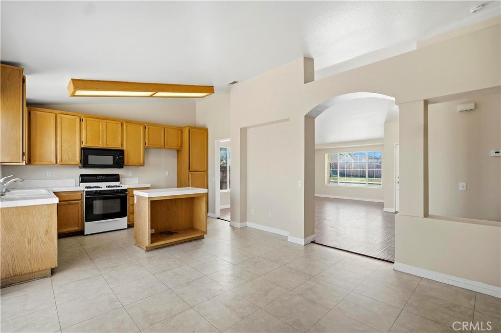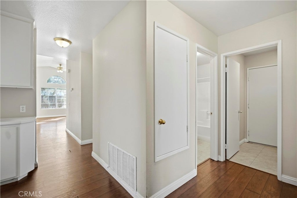 Welcome to this charming 4-bedroom, 2-bathroom home offering 1,559 sq ft of comfortable living space on a spacious 8,030 sq ft corner lot. Built in 1997, this well-maintained single-story home features a bright and open floor plan with soaring cathedral ceilings that create an airy, inviting atmosphere. Refresh paint, Pergo flooring throughout, with nice vinyl tile in Kitchen, Dining and baths rooms. The open-concept kitchen includes a center island, classic oak cabinetry, and ample counter space—perfect for everyday living and entertaining; Master suite with double sinks and walk-in closet; Step outside to enjoy the low-maintenance rock front landscaping, thoughtfully designed for water conservation and easy upkeep. The generous lot provides space for outdoor gatherings, gardening, or potential RV access (buyer to verify). Conveniently located near schools, shopping, and commuter routes, this home offers both comfort and value. A Great Opportunity You Don’t Want to Miss!