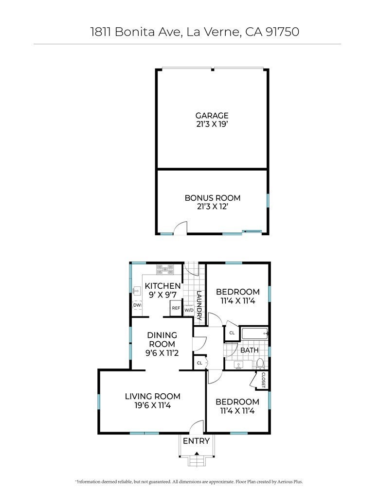 Experience modern comfort and timeless charm at 1811 Bonita Ave in the highly sought-after city of La Verne. This beautifully maintained 2-bedroom, 1-bath home is nestled in a desirable neighborhood known for its top-rated schools. Step inside to a bright and spacious living room featuring gorgeous hardwood floors that flow seamlessly into the dining area and kitchen. The well-appointed kitchen boasts granite countertops, stainless steel appliances, a farmhouse sink, and ample cabinetry for storage. Both bedrooms are generously sized, offering comfort and style, while the updated bathroom showcases classic subway tile, a designer sliding glass shower door, and a modern vanity. Additional highlights include recessed lighting, central A/C, dual-pane windows, and a professionally landscaped front and backyard. The garage features a unique rock climbing setup, adding a fun and functional touch. Enjoy the expansive, park-like backyard—perfect for relaxing or entertaining. The property also includes a 2-car detached garage and an approximately 273 sq. ft. bonus room, ideal for guests, a home office, podcast studio, or potential ADU conversion. Located just minutes from Downtown La Verne, local colleges, dining, shopping, and freeway access, this home also sits along the city’s beloved 4th of July parade route. Move-in ready and full of character, this is a rare opportunity you won’t want to miss!
