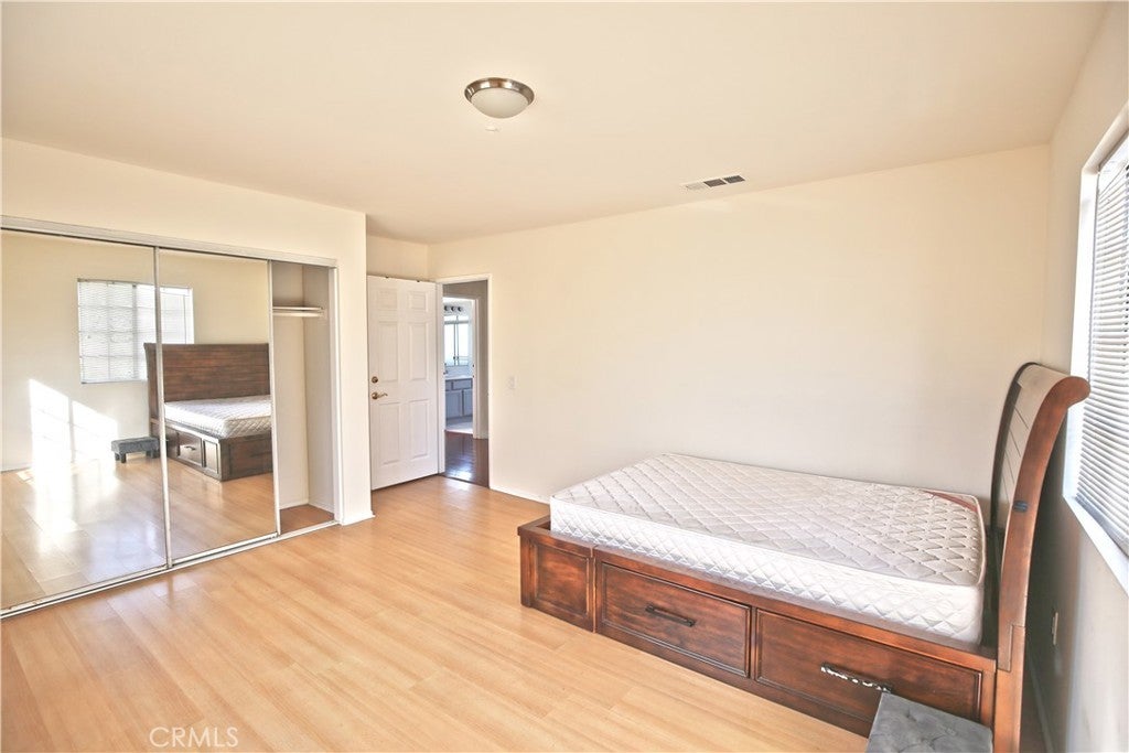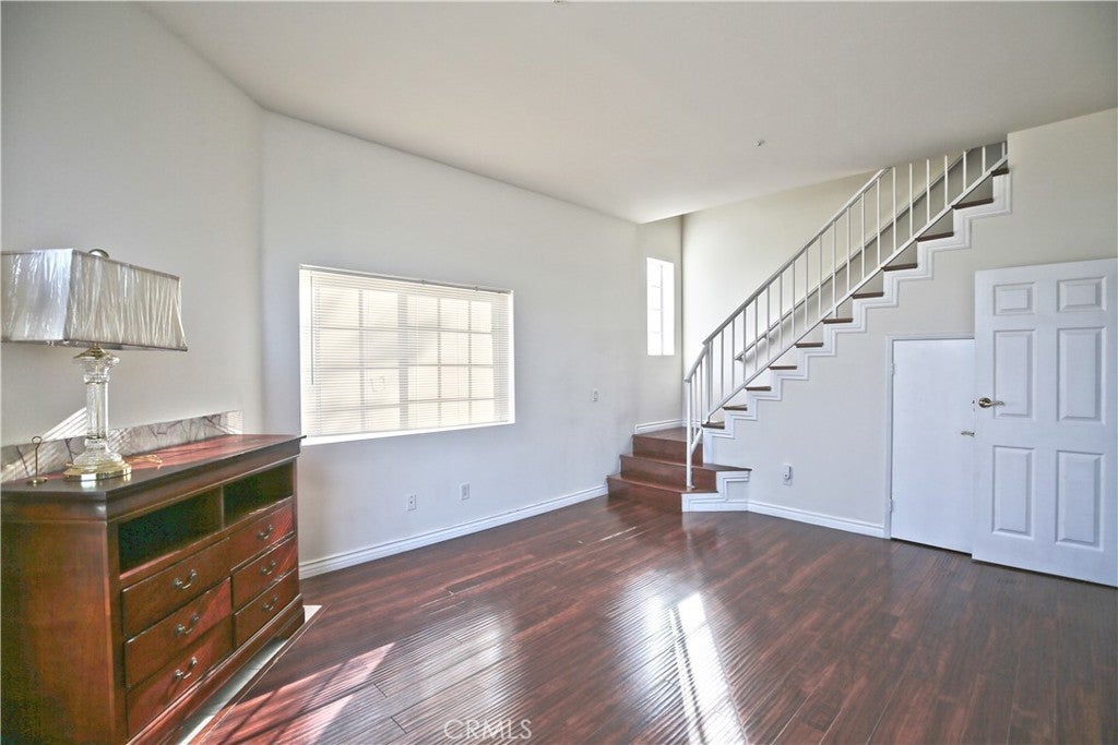 This rare and stunning two-story updated spacious PUD is located in a prime area of El Monte. It features 3 bedrooms and 2.5 bathrooms. The large enclosed front yard welcomes you into this bright and inviting home. The living room boasts a high ceiling, creating an open and airy atmosphere. The dining area is adjacent to the open kitchen and offers sliding door access to the backyard, perfect for indoor-outdoor living. The updated kitchen features newer cabinetry, quartz countertops with backsplash, and newer appliances. A powder room completes the first floor. The spacious primary bedroom offers a vaulted ceiling, his-and-her closets, and a private en-suite bathroom. Two generously sized bedrooms share a full bathroom in the hallway. Fresh interior paint and wood flooring further enhance the home’s appeal. Additional features include central air conditioning and heating, a two-car attached garage with direct access, and a laundry area located inside the garage. There is also an assigned parking space next to the garage. Conveniently located near restaurants, an elementary school, and the LA Badminton Club. Move-in ready!