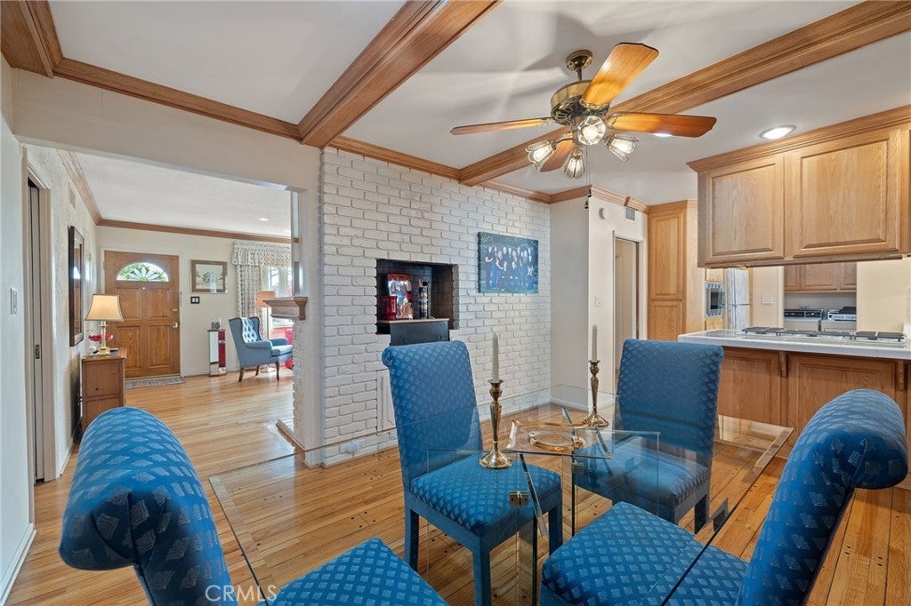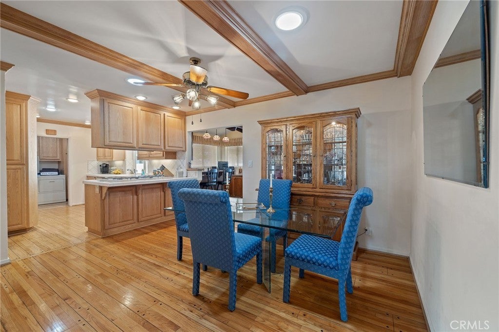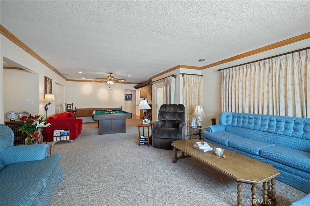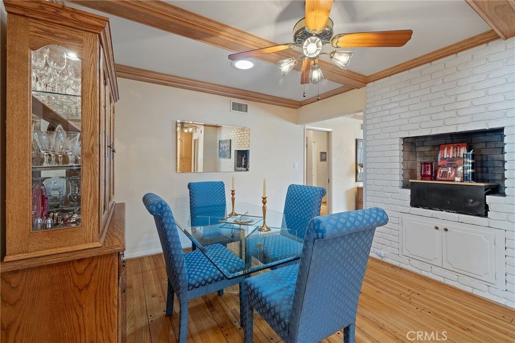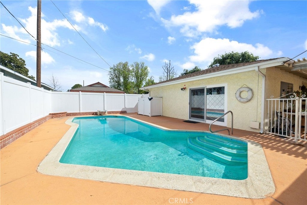 Single-story pool home featuring 5 bedrooms and 2 bathrooms with approximately 2,360 square feet of living space on a 7,698 square foot lot. Built in 1957, this home includes central air conditioning and heating, hardwood flooring and carpet, and an individual laundry room. Interior living areas include a formal living room with gas-burning fireplace and bay window, formal dining room, family room with wet bar, and a kitchen with tile countertops and appliances including a Kitchenaid gas 5-burner cooktop, built-in Kitchenaid oven, LG built-in microwave, and Whirlpool dishwasher. Custom cabinetry is featured in the kitchen, office, and garage. Flexible floor plan with one bedroom currently used as an office and another used as a crafts room. One bathroom includes an accessible bathtub designed for safer bathing. Detached 2-car garage with built-in cabinets and epoxy flooring. Exterior features include a gated pool, covered patio with spa, long driveway, and automatic sprinkler system in the front yard. Conveniently located near shopping, restaurants, and everyday amenities, and within walking distance to Whittier Christian High School.