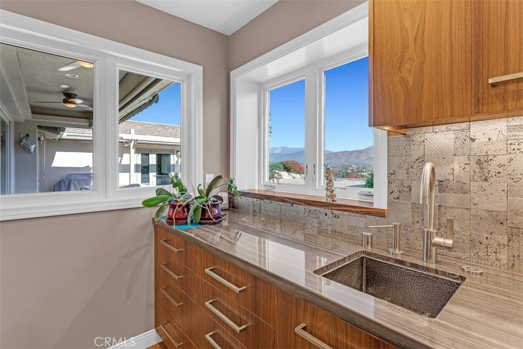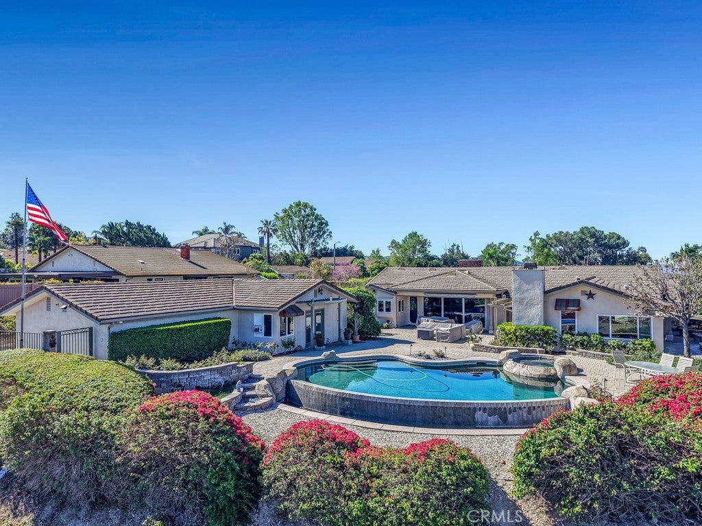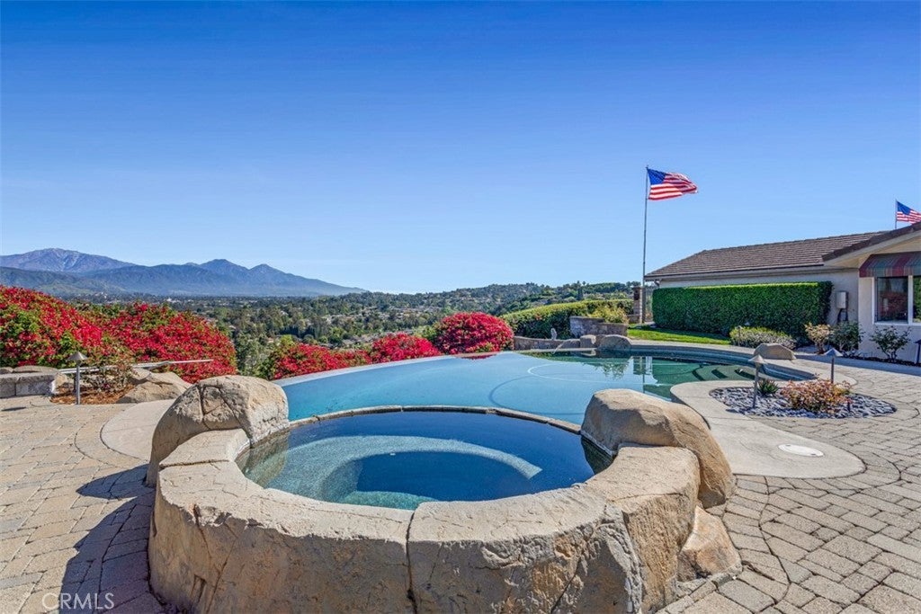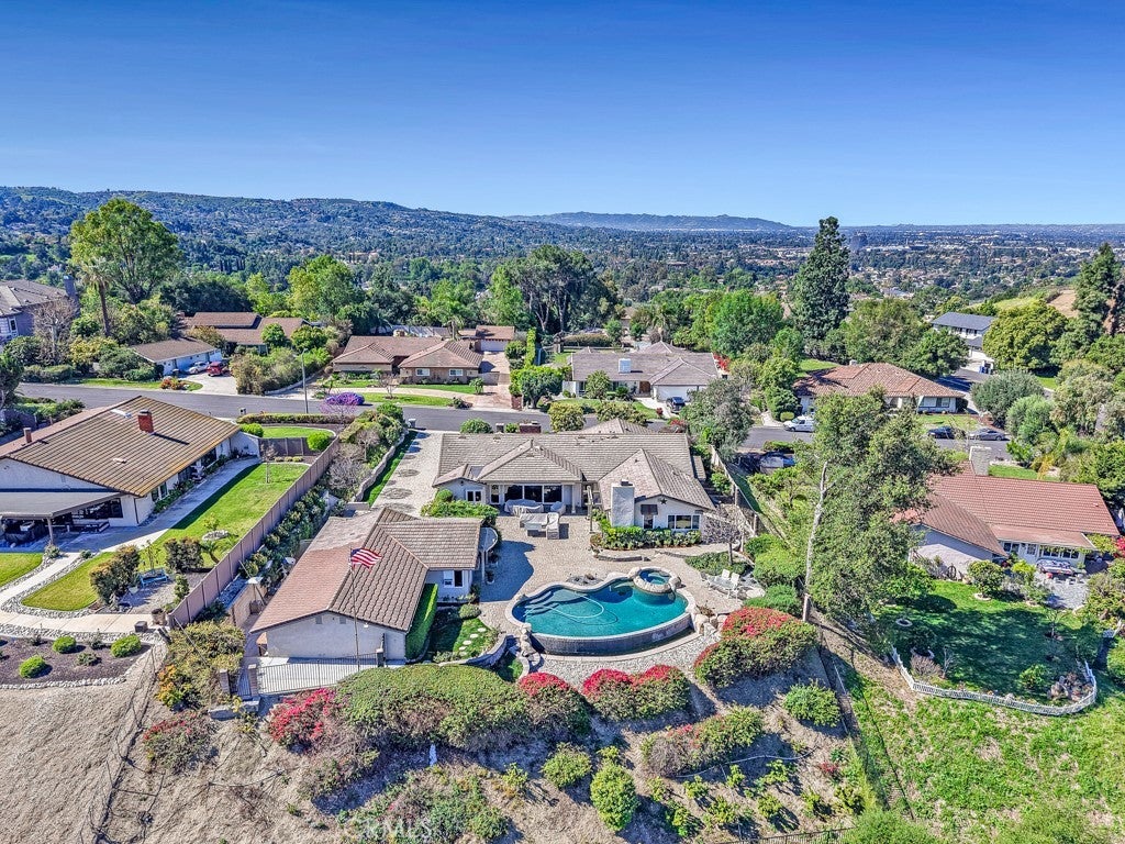 Located at the end of a quiet cul-de-sac in desirable Covina Heights, this exceptional home is designed for those who love to entertain. Situated on a generous lot with breathtaking views of Mt. Baldy and the surrounding foothills, the backyard retreat features an infinity pool and spa, a pool house with outdoor shower, and multiple areas to relax and take in the scenery. The main residence offers 5 bedrooms and 3 bathrooms, plus an additional half bath in the pool house for added convenience. The chef’s kitchen is truly a standout, featuring double ovens, double warming drawers, a six-burner cooktop, and an oversized island larger than many kitchens. Just steps away, the well-appointed wet bar includes two wine coolers and its own dishwasher—perfect for effortless entertaining. Inside, the home boasts an open floor plan filled with natural light, enhanced by multiple skylights and three fireplaces that add warmth and character throughout the living spaces. The park-like grounds are beautifully landscaped and include several fruit trees, including avocado and a variety of citrus. From the street inward, the property showcases hand-laid paver surfaces and professional landscaping that create striking curb appeal. This remarkable property combines luxury, comfort, and stunning views—sure to impress even the most discerning buyer.