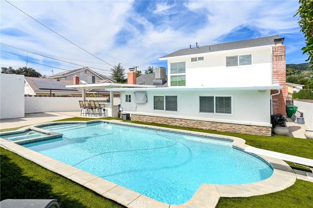 Charming two-story La Verne home spacious 4 bedroom, 2 bath floor plan with exceptional indoor/outdoor living and breathtaking mountain views. Thoughtfully designed for comfort and entertaining, the home features a welcoming family room with fireplace, a cozy den with a second fireplace, and a separate dining area. The convenient downstairs primary suite includes a private bath for single-level living. Chef-ready kitchen opens to living spaces and backyard, while a dedicated office and extra storage area provide ideal work-from-home flexibility. Practical upgrades include a home EV charging station and a built-in whole-house Generac backup generator for reliable power. Outdoor amenities are made for year-round enjoyment: sparkling pool and spa, expansive double driveway with abundant guest parking, and a 2-car attached garage. This La Verne residence blends functional luxury and neighborhood charm — a rare find with views, comfort, and modern convenience.