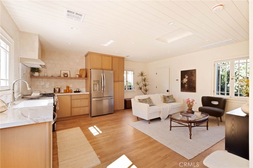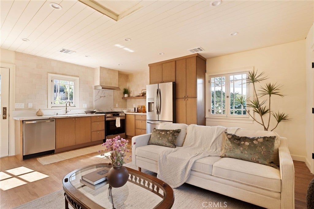 Bright, beautiful and brimming with Craftsman character! Every house has a feeling that hits you the moment you enter and this Highland Park cutie emits nothing but joy and good energy! Tucked away on a quiet street just a few minutes from adorable coffee shops, trendy eateries and booming nightlife on Figueroa, this thoughtfully reimagined 2-bedroom, 2-bath charmer will simply steal your heart. From updated systems to custom-designed finishes and restored architectural details, everything feels intentional and thoughtful. The interior is flooded with beautiful natural light, and everything is perfectly situated to maximize space and an easy flowing layout. Wood floors span the entirety of the layout and romantic wood windows look out onto uplifting views of greenery, colorful flowers and classic Northeast LA hills and palm trees in the distance. Outside, the fully fenced in and beautifully landscaped yard is the perfect setting for morning coffee sipping or lounging! The totally gated driveway features comfortable off-street parking. Perfectly situated in one of LA's best neighborhoods...this Highland Park gem is an ideal blend of amazing location, modern energy and classic character!