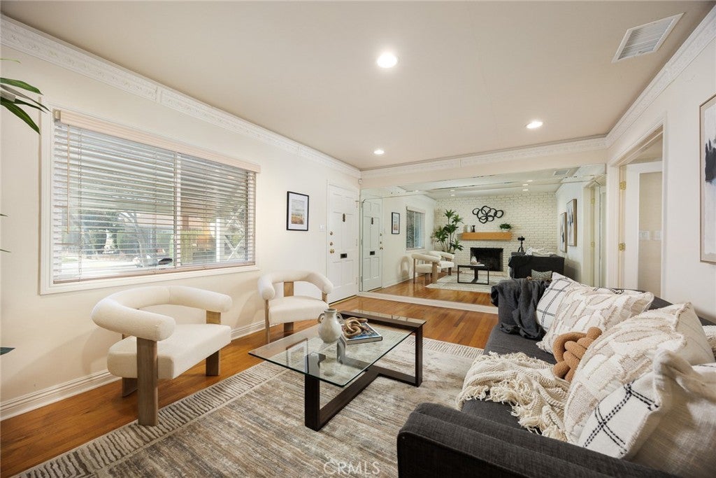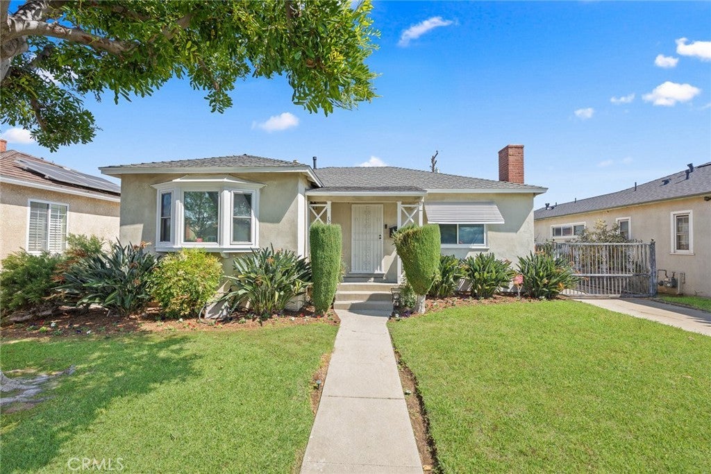 Welcome to this charming single story home, proudly on the market for the first time in 50 years, nestled in the highly sought-after Almansor Park neighborhood of Alhambra. This spacious and inviting residence offers timeless character, thoughtful updates, and exceptional indoor-outdoor living. A gated driveway with an automatic gate and automatic garage door opener provides both convenience, security, and curb appeal as you arrive. Inside, the welcoming living room features a cozy fireplace and French doors that open to a bright great room and dining area, complete with built-in media shelving, perfect for entertaining or relaxing with family. Adjacent is a versatile fourth bedroom or office with custom built-ins, ideal for today’s flexible lifestyle needs. The tastefully updated kitchen showcases custom cabinetry, modern countertops, and quality appliances, blending style and functionality. A pair of French doors leads to a covered patio, creating a seamless transition to the lush backyard—an ideal setting for morning tea or evening gatherings. The home offers three additional bedrooms and two bathrooms, including a comfortable primary suite with a double sink vanity. Designed for convenience and easy maintenance, this home delivers both comfort and practicality in a prime location. Don’t miss this rare opportunity to own a lovingly maintained home in one of Alhambra’s most desirable neighborhoods
