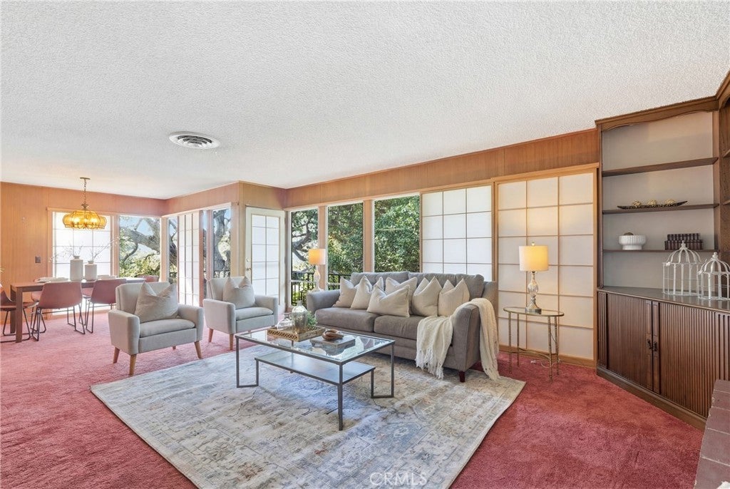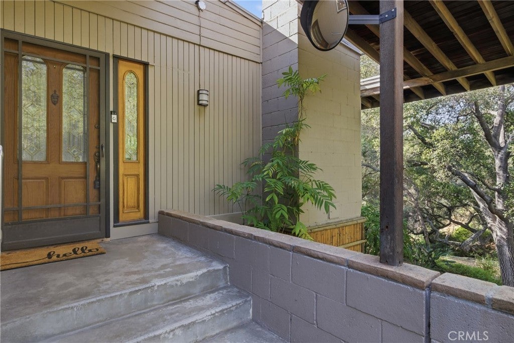Tucked away on a 10,992 square foot lot adjacent to Monrovia Canyon Park and the Hillside Wilderness Preserve, this unique 1952 home offers a rare opportunity to live surrounded by nature while still being just minutes from town. With majestic oak trees, lush landscaping, and incredible mountain and canyon views, the setting feels like a private retreat. The home features distinctive Japanese-inspired architectural details inside and out, including bamboo siding at the front of the home and sliding Shoji doors that open across floor-to-ceiling living room windows, bringing the outdoors in and filling the space with natural light. The living room also features a dramatic floor-to-ceiling brick fireplace and built-in floor-to-ceiling corner bookshelf and cabinet. A formal dining room with chandelier connects to the galley kitchen through a convenient breakfast bar. The kitchen includes vinyl flooring, electric range, and double sink. The family room is warm and inviting with angled wood siding, adding to the home’s architectural character. Outdoor living is a highlight of the property, with wrap-around wood decking designed to take full advantage of the peaceful setting and surrounding views. The property includes a two-car detached garage and offers direct access to hiking trails, the Canyon Park Nature Center, the waterfall, and Sunset Bench. The area is known for its natural beauty and wildlife — deer, bobcats, and even the occasional bear have been known to wander through, so consider this your very own nature channel, live and in person. If you’ve been looking for a home that feels like a mountain retreat, artist’s hideaway, or peaceful escape surrounded by nature, this special property offers a truly one-of-a-kind setting in beautiful Monrovia.
