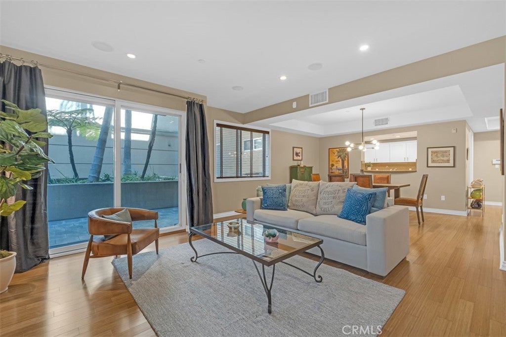 This secluded two-bedroom, two-bathroom townhome presents a truly compelling price-to-value opportunity, establishing it as a quiet find and a hidden treasure in Beverly Grove. For the discerning buyer, this is the pivotal moment to secure a remarkable asset before the market recognizes this pricing anomaly. Spanning 1,426 square feet, this residence is strategically designed as a Serene Sanctuary from the city's buzz, where peace and privacy are paramount. Tucked away within a desirable complex, the unit boasts only one shared wall, giving it the feel of a detached home. This unique environment naturally fosters a calm, contemplative atmosphere, perfect for the homebody who values a private haven. Inside, sophistication meets comfort, featuring wood floors and high ceilings that create a polished yet grounding environment. The open living space is anchored by a modern fireplace, ideal for cozy evenings, and the Chef’s Kitchen is well-equipped with granite counters and stainless steel appliances. Functionality is maximized with a second bedroom that offers unparalleled versatility—it could be an inspiring creative studio or a quiet home office. The primary suite serves as a true retreat, boasting a generous walk-in closet and a spa-like en suite bath. Extending the living space, a semi-private, courtyard-facing patio offers a shaded outdoor space for quiet reflection, complementing the property's unbeatable Walkability and Value. Enjoy supreme everyday convenience with a high level of walkability in a safe neighborhood, situated moments from The Grove, Erewhon, and the 3rd Street boutiques. Practical amenities include in-unit laundry, two secured parking spaces, and low HOA dues. Ultimately, this townhome is the perfect match for the person who values a quiet haven and unbeatable security in a top-tier neighborhood. Lock in this extraordinary value and potential equity growth now.